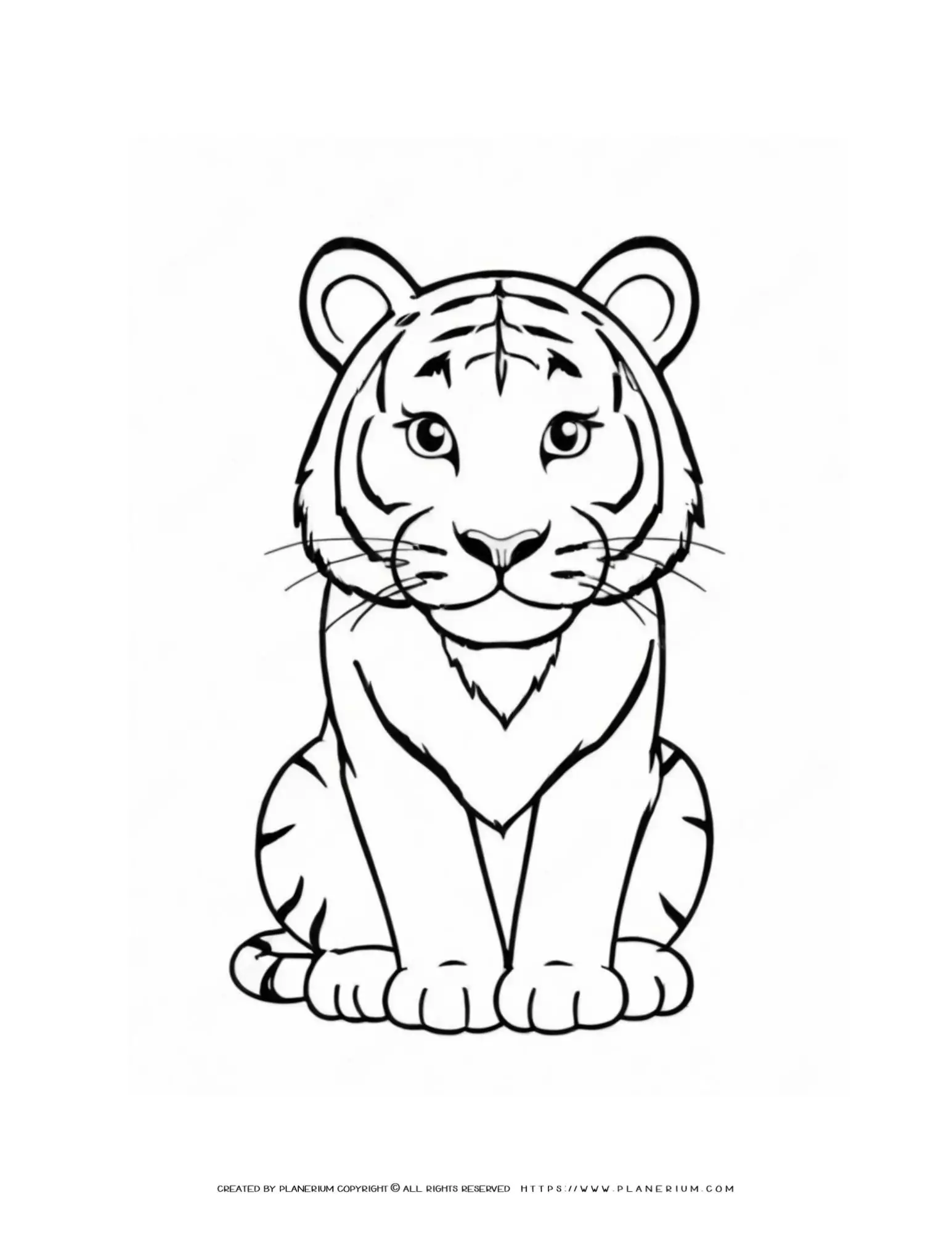 Adorable Baby Tiger Coloring Page – Cute Cartoon Outline Style for Kids