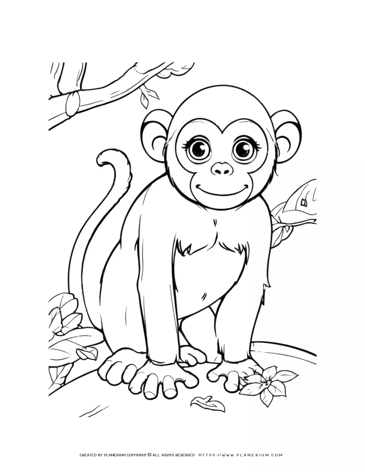 Adorable Monkey Outline Coloring Page: Jungle Adventure for Kids