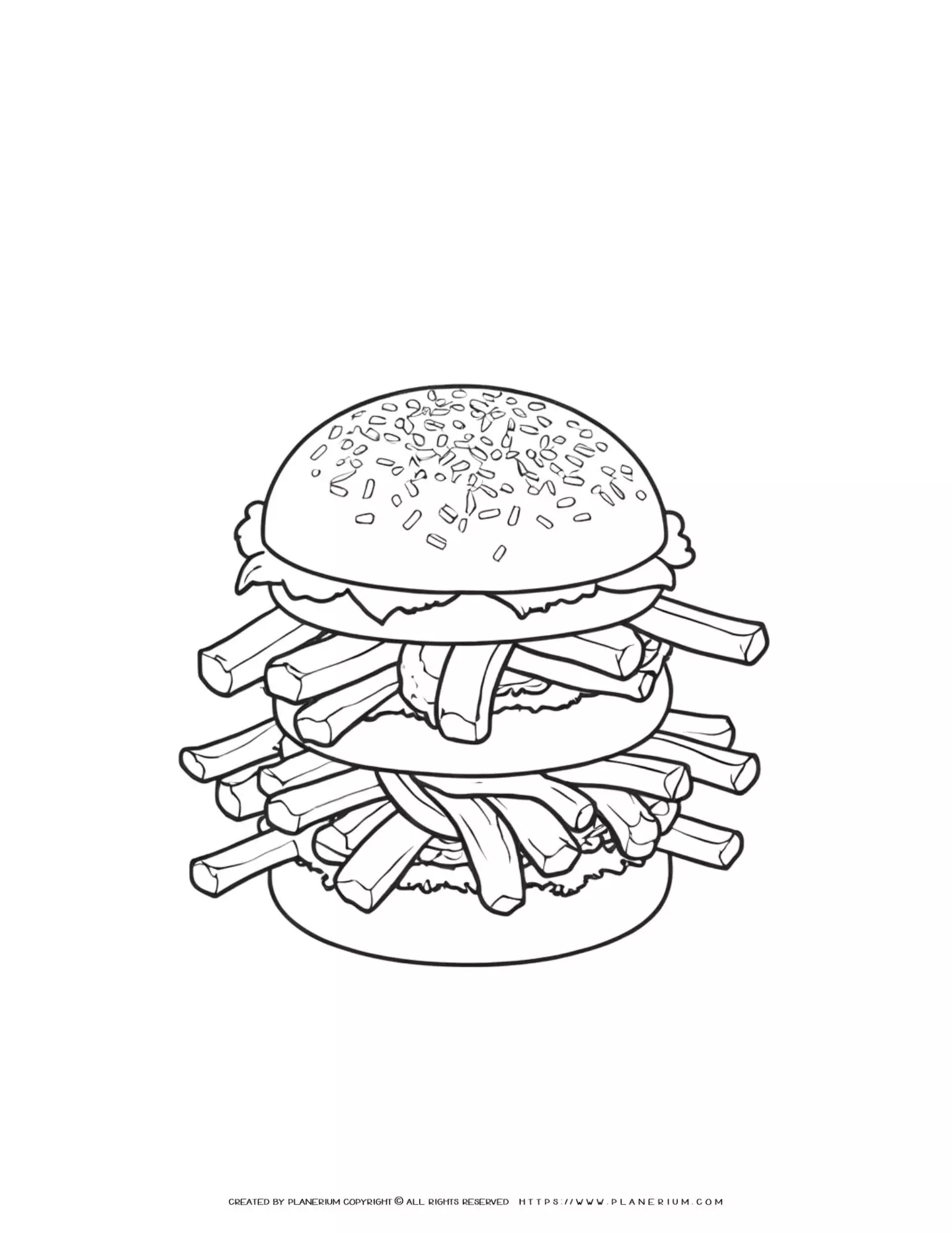 Looking for a fun and educational activity to engage your students or children? 🌟 Try our big hamburger with fries inside coloring page! This printable is specially designed to capture the imagination of children while reinforcing essential learning skills.