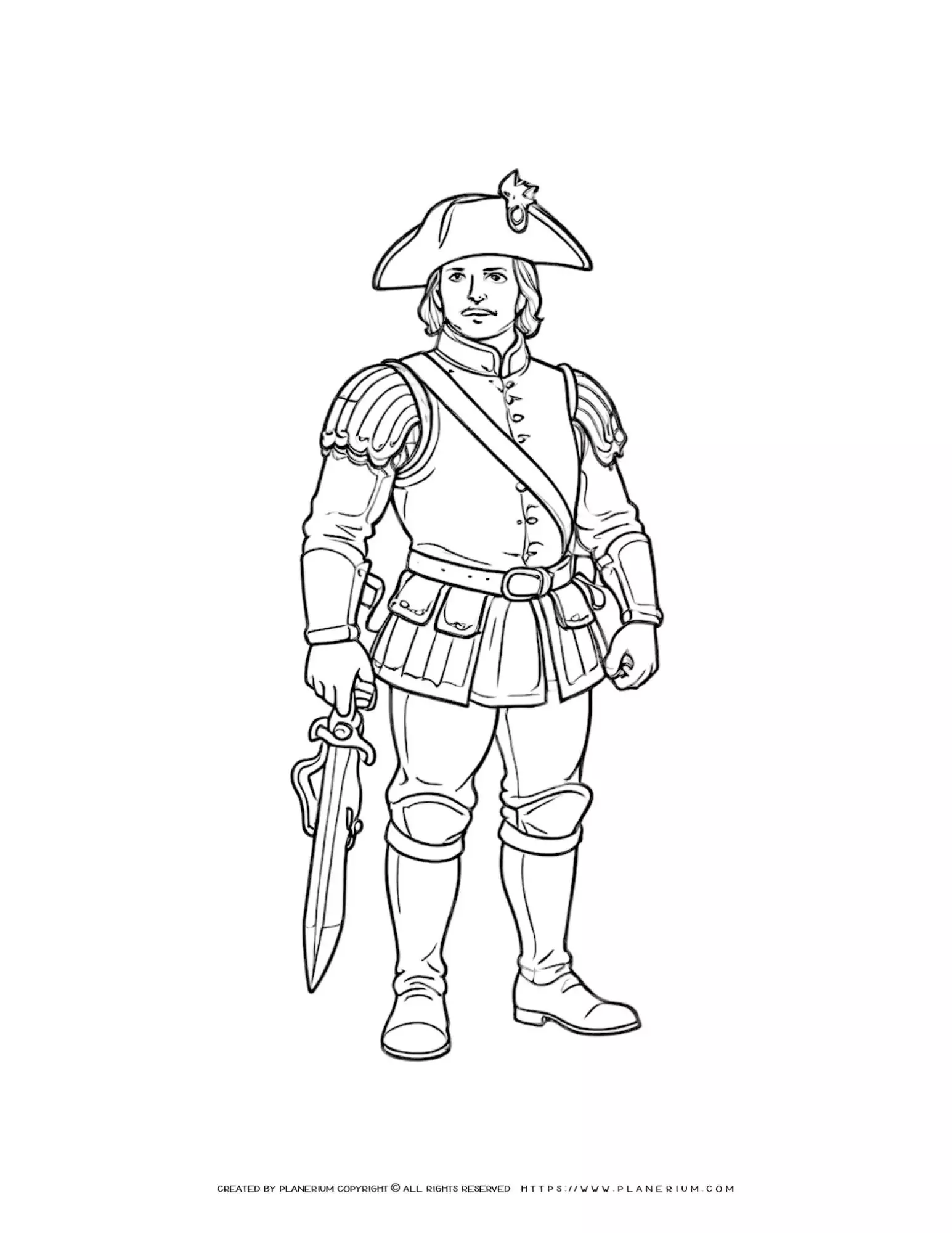 Colonial Soldier with Sword Military Uniform Coloring Page
