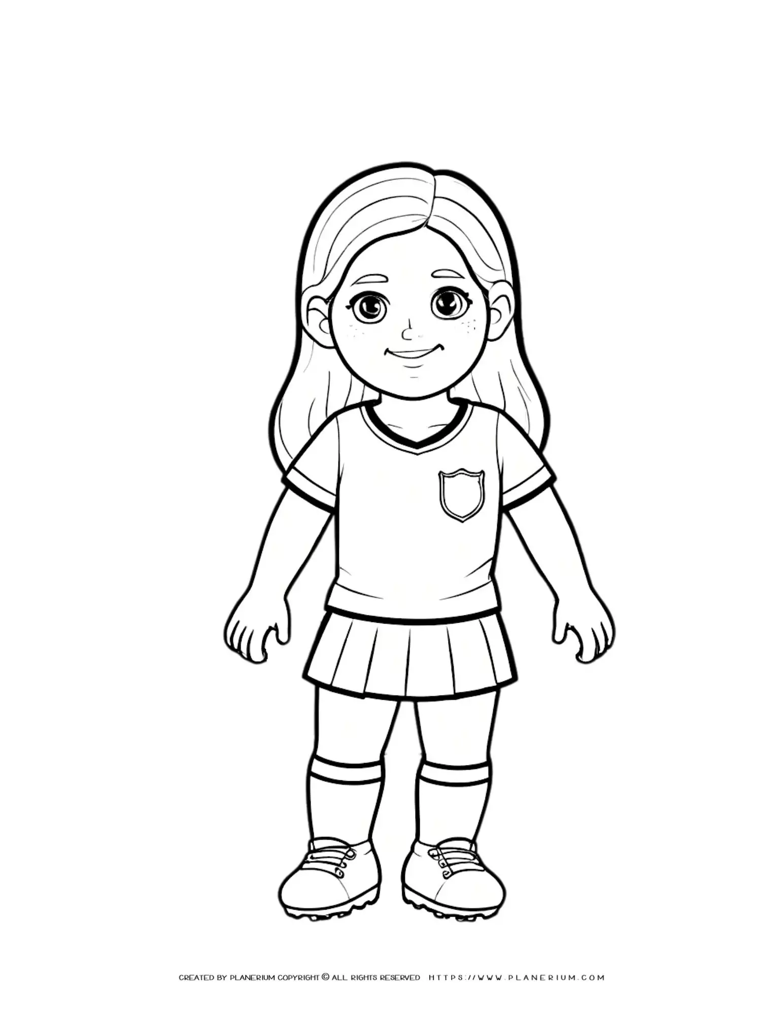 Coloring Page of a Comic Soccer Girl Player Standing Outlined