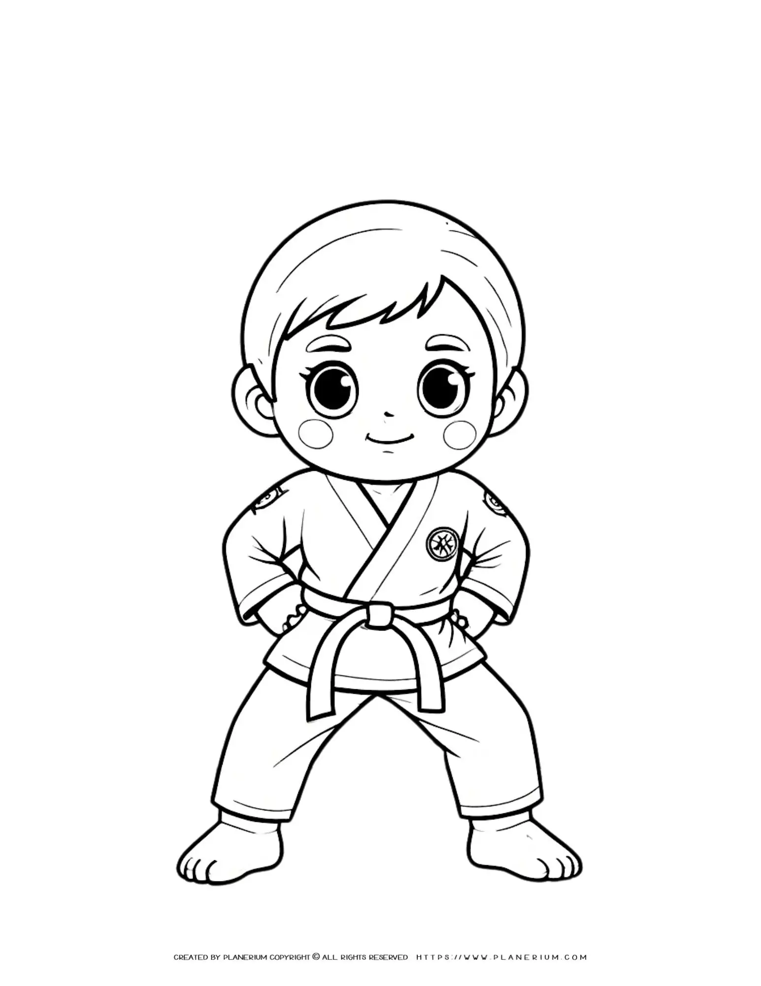 Comic Boy in Karate Suit Illustration Coloring Page for Kids and Martial Arts Enthusiasts