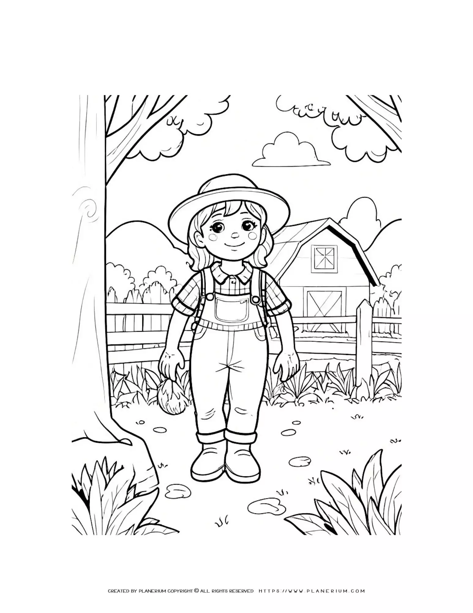 Comic Girl Working on the Farm Coloring Sheet