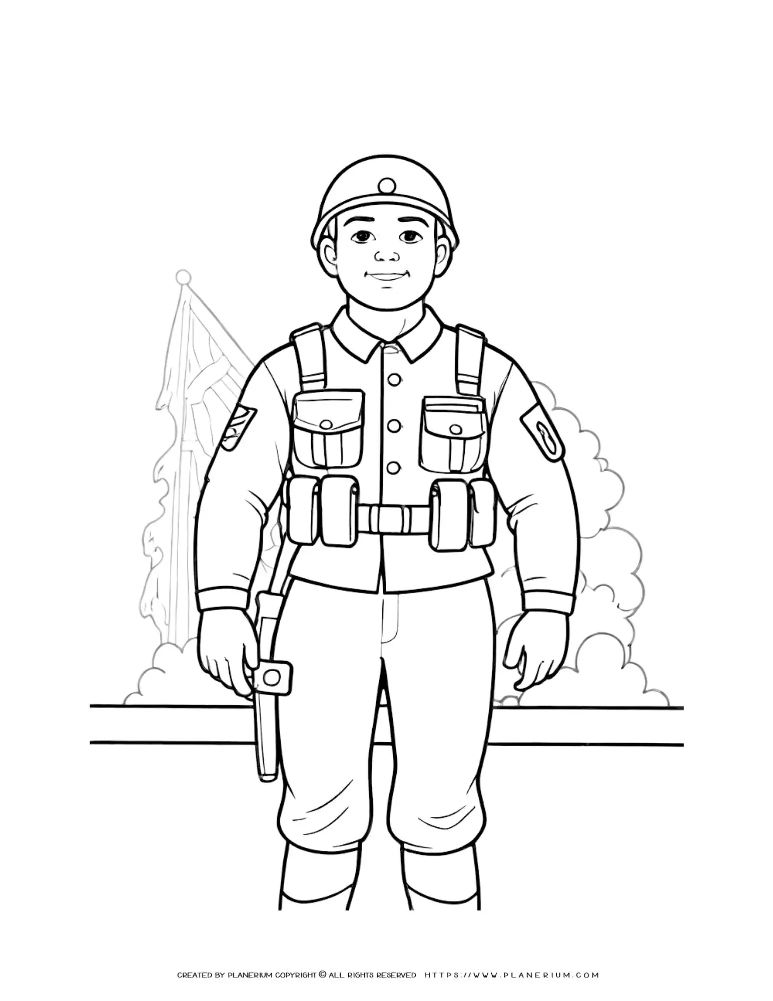 Comic Soldier with Uniform Standing Outline Coloring Page