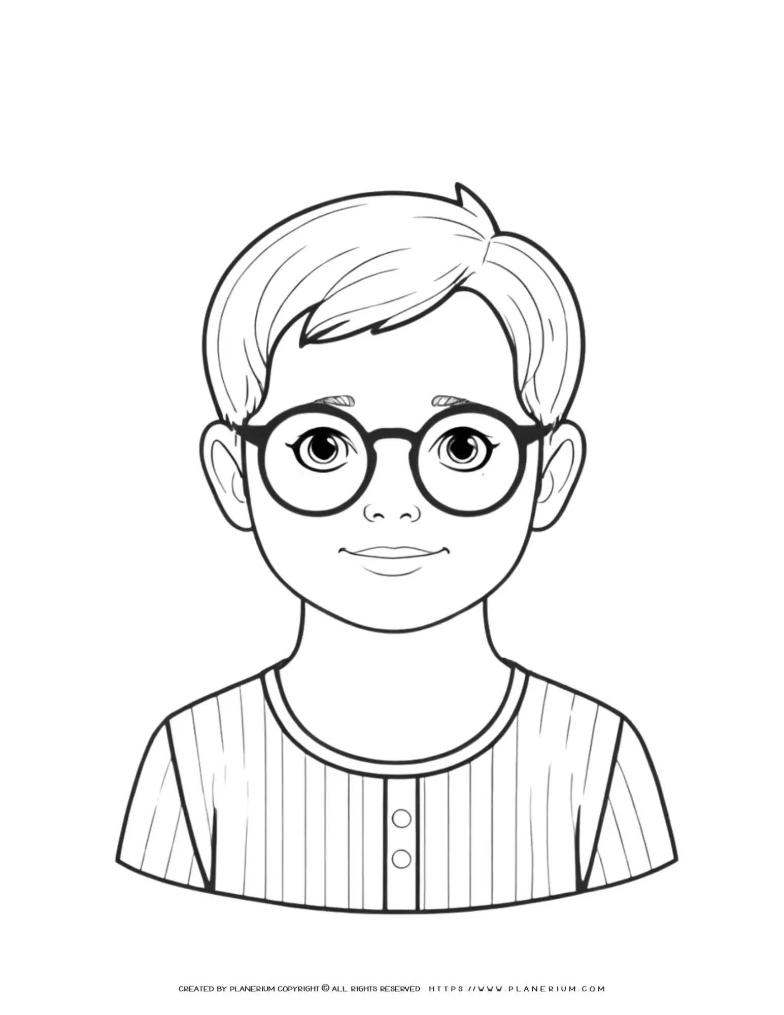 Moreover, this activity can be a great entry point for discussions. Teachers and parents can use the Boy with Glasses Portrait Coloring Page to talk about wearing glasses and how they help us see better. It opens up a dialogue about vision, the importance of eye care, and understanding and accepting differences among peers.