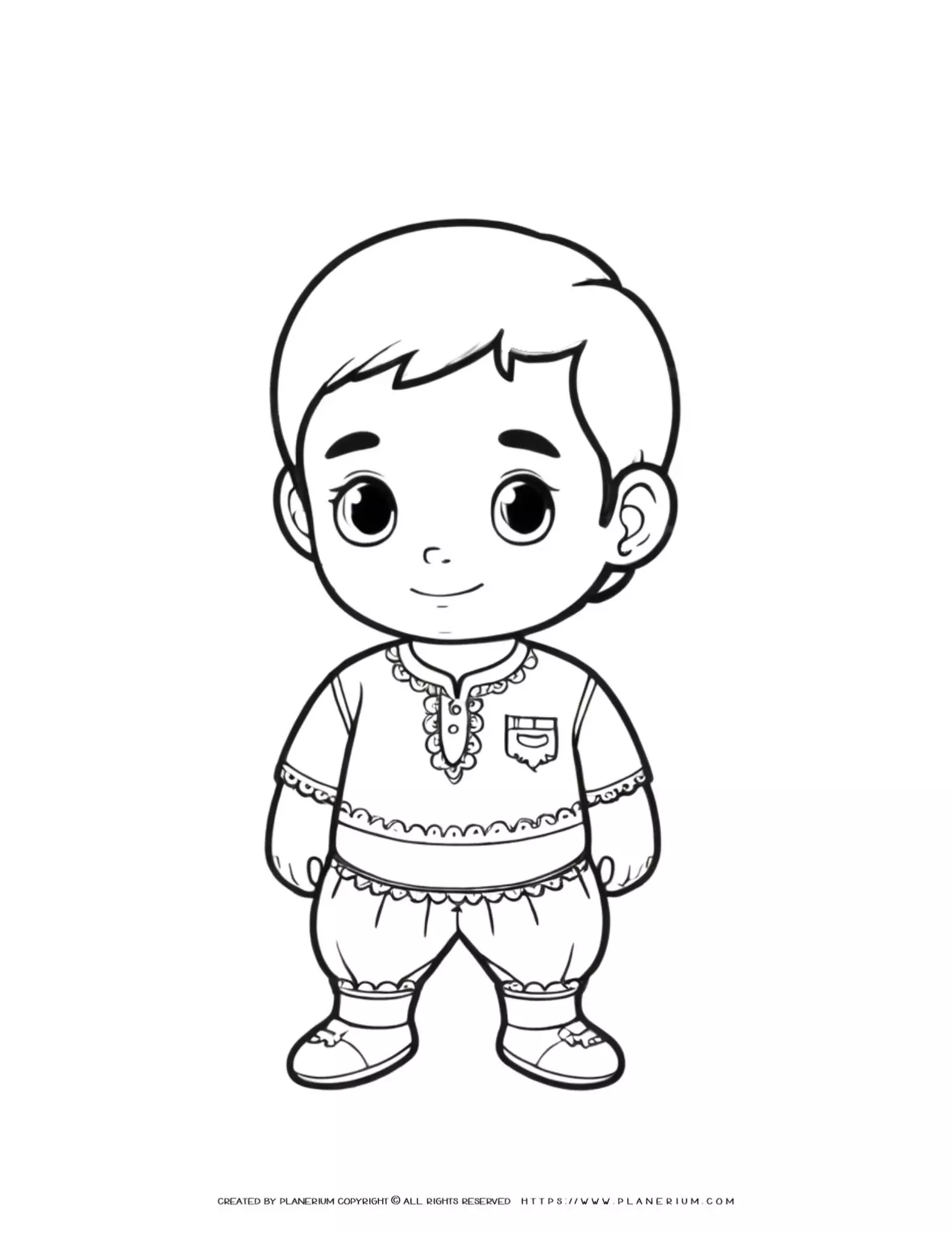 This adorable coloring page features a cute little Indian boy. This printable is not just a simple coloring page, it’s an opportunity for children to explore different cultures and learn about diversity.