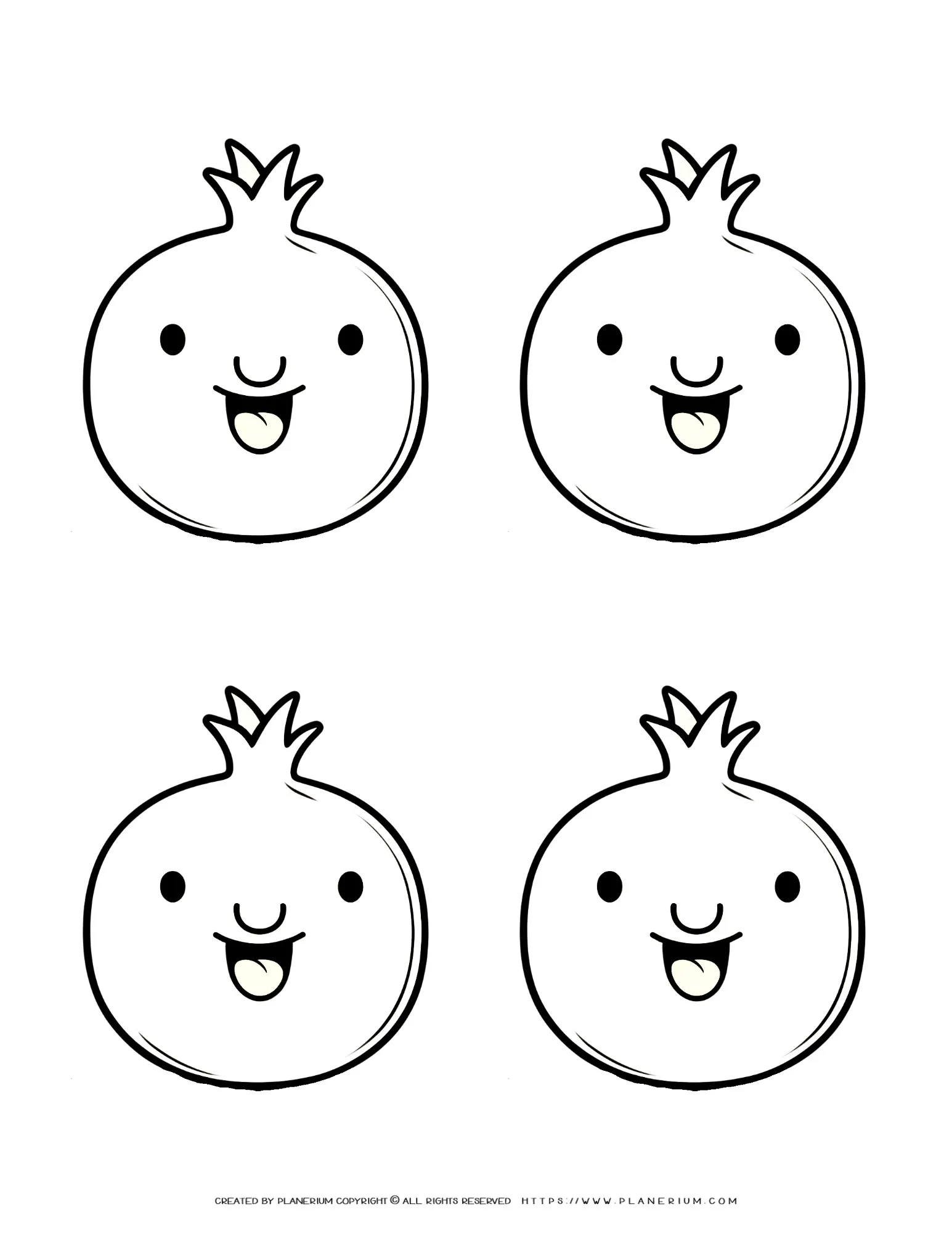 Engage kids with a cheerful, free printable coloring-pages sheet featuring 4 (four) adorable pomegranate faces ready to color. Designed for teachers, parents, and homeschoolers, this single-page download is perfect for classroom centers, after-school activities, or a Shanah-Tovah craft that brings smiles and seasonal learning.