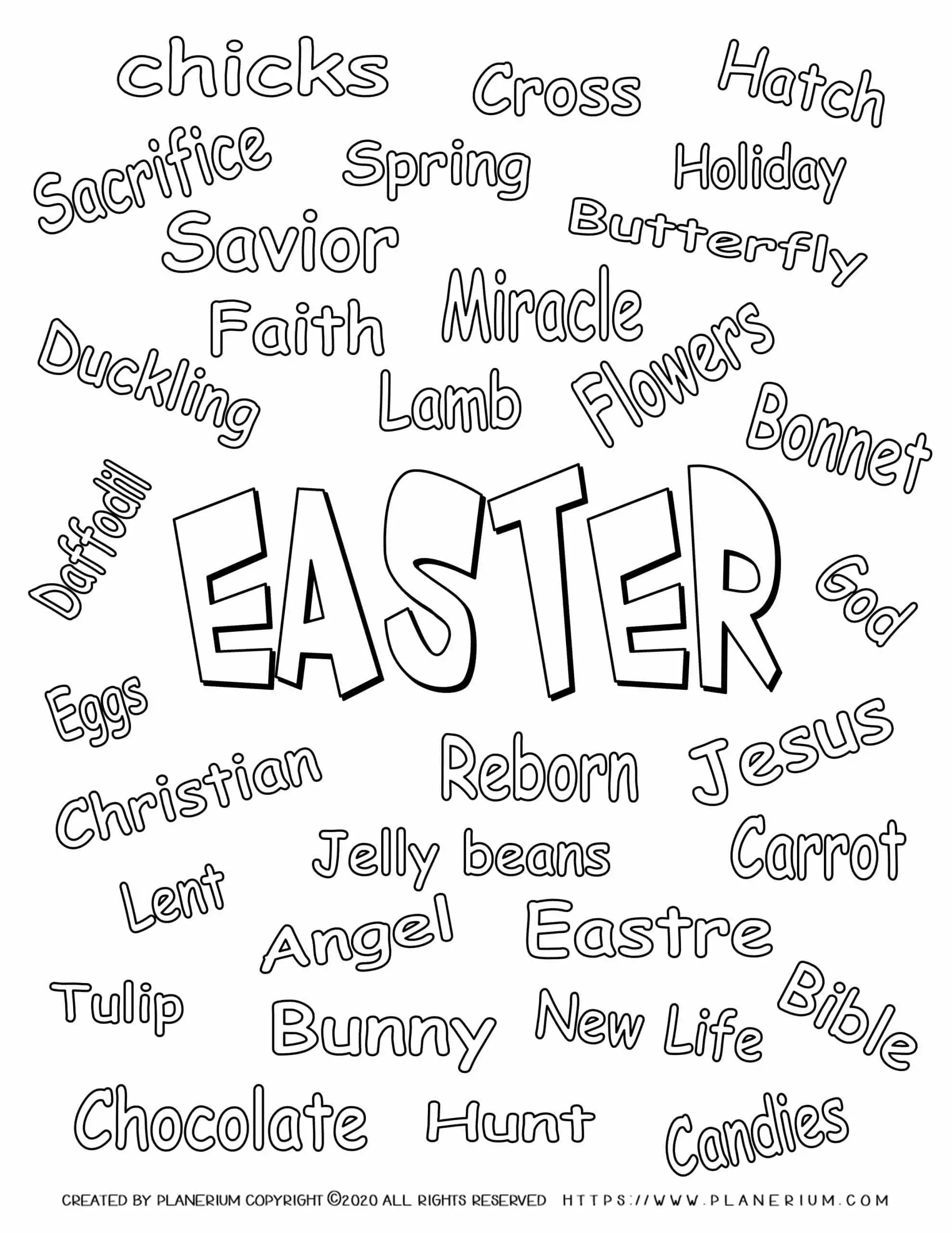 Easter Related Words: Free Coloring Page