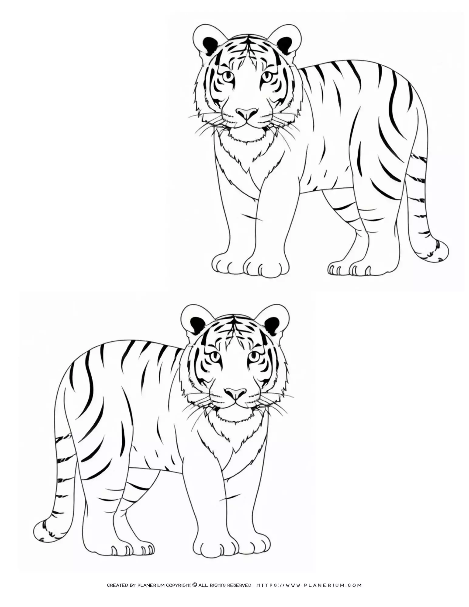 Dive into the mesmerizing world of wildlife with our “Two-Tigers-Outlines-Animal-Coloring-Page-for-Kids”! 🐅🎨 Designed with care to captivate young minds, this printable serves as the perfect educational tool for teachers, parents, and homeschoolers alike. By bringing these outlines to life with colors, children not only embark on a creative journey but also delve into the fascinating realm of animals, fostering a love for nature.