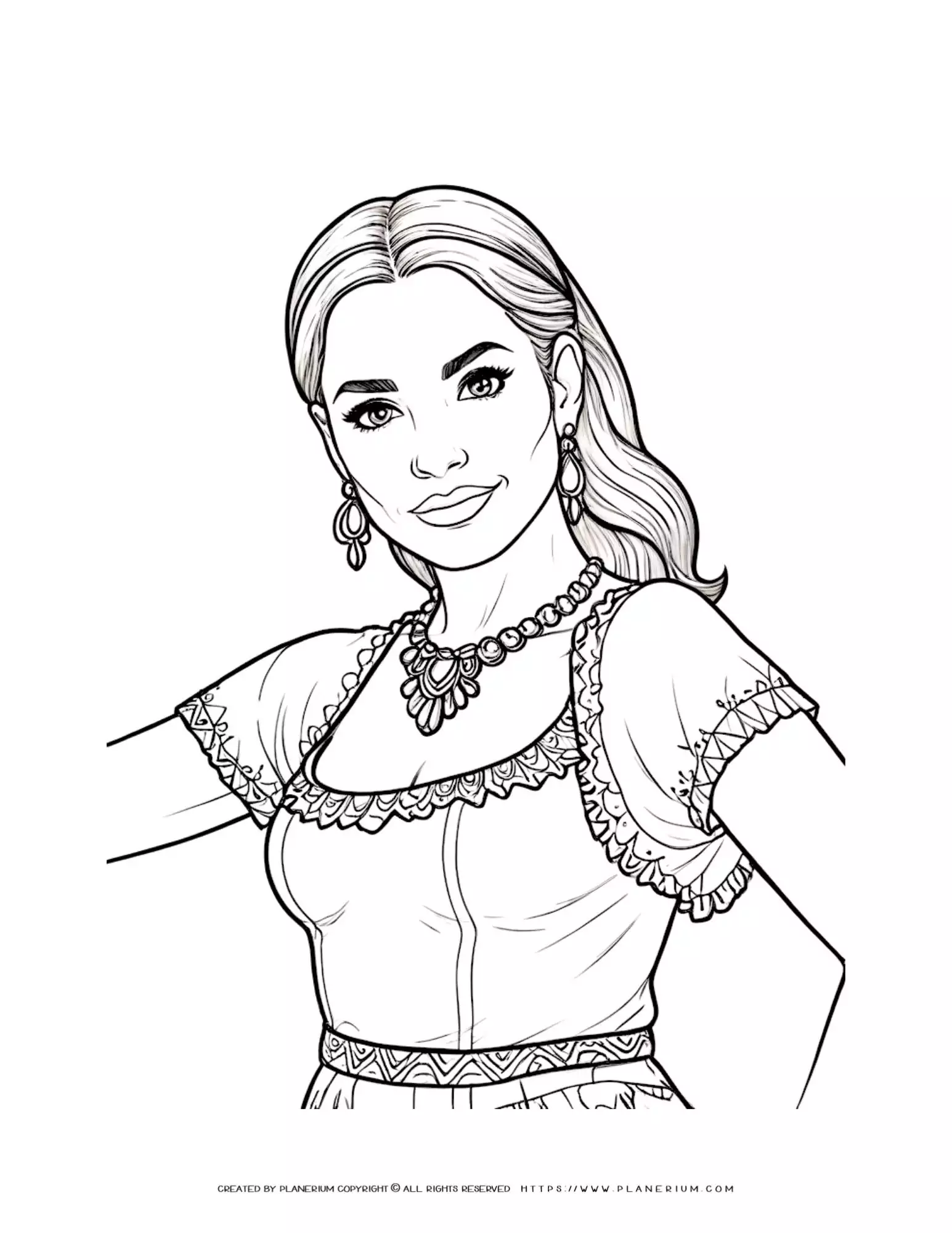 Exquisite Spanish Woman Dancer Portrait Coloring Page – Captivating Art Therapy for Adults, Perfect for Relaxation and Mindfulness