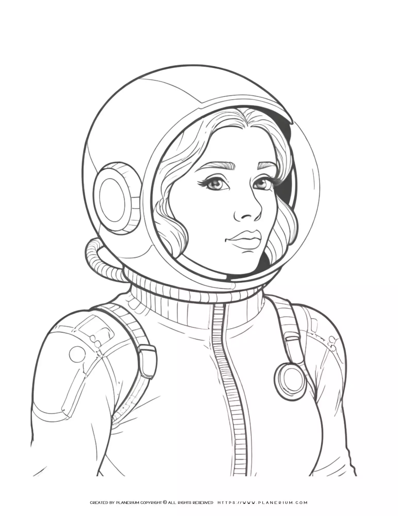 Female Astronaut Portrait Coloring Page for Kids and Space Enthusiasts
