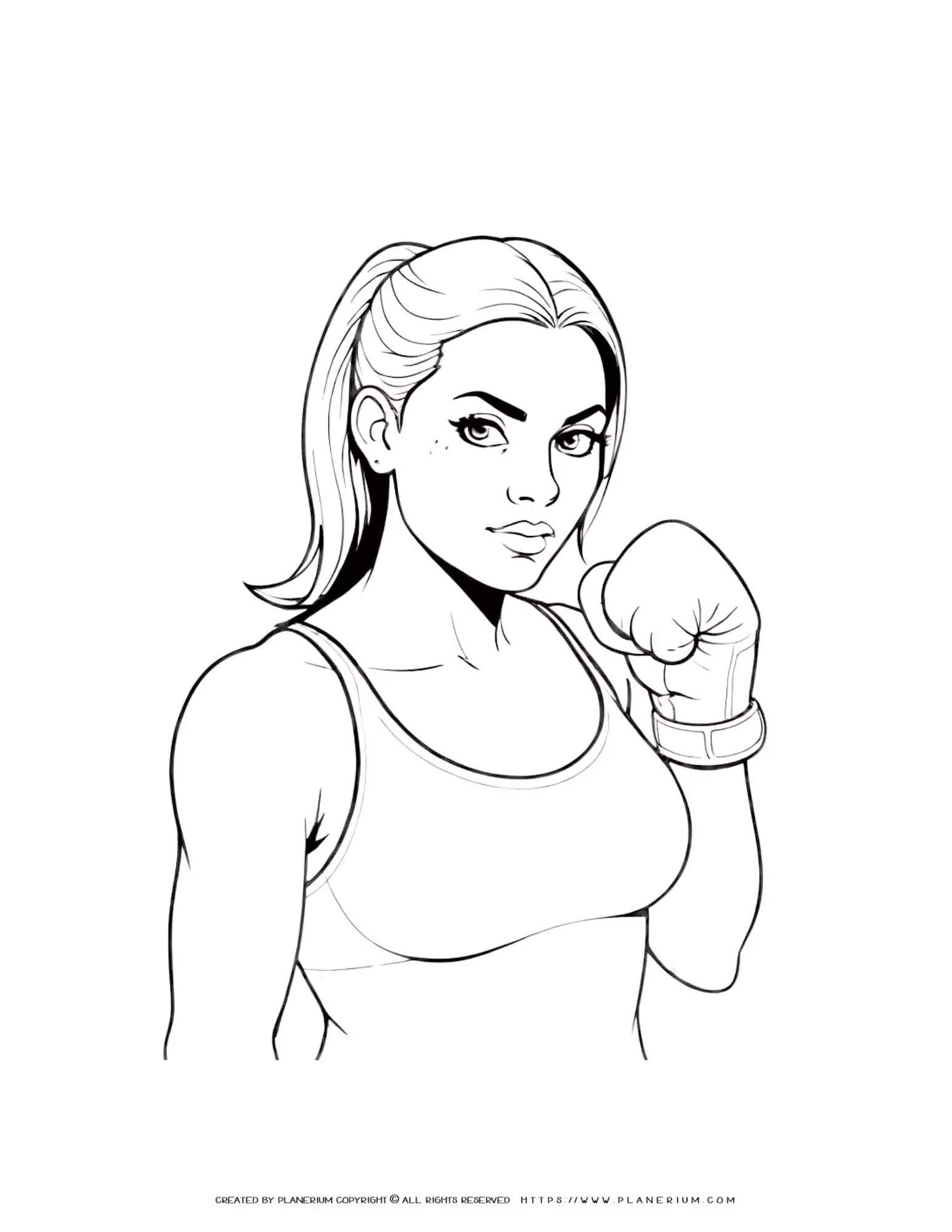 Female Boxer Portrait Coloring Page Illustration for Fitness and Sports Enthusiasts