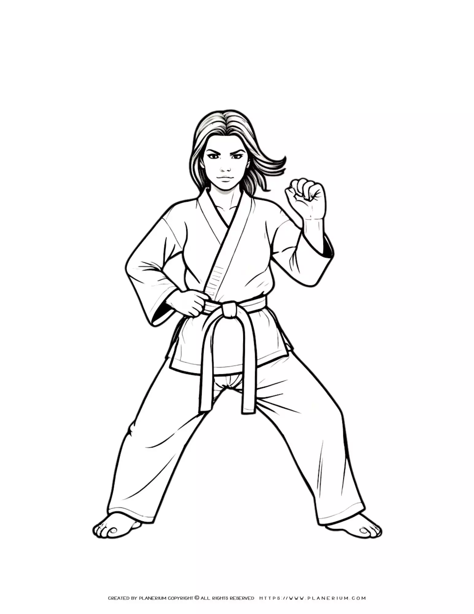 Female in Karate Suit Coloring Page for Kids and Adults