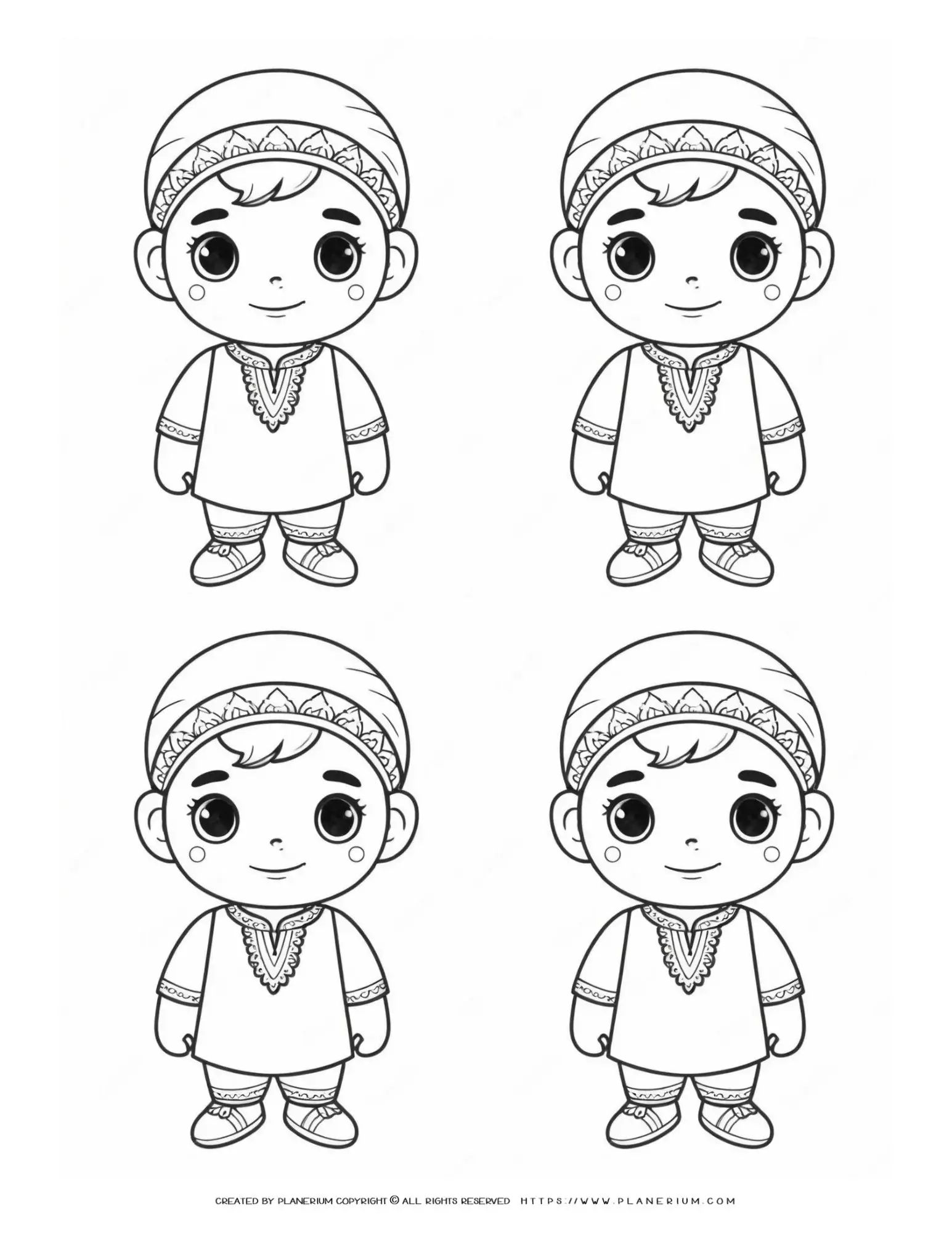 Introducing our Four Cute Little Indian Boy Outlines Coloring Page for Kids! 🎨🖍️ Perfect for teachers, parents, homeschoolers, and special educators looking to add a fun and educational activity to their curriculum. This printable is not just a coloring page; it’s a tool for learning and creativity.