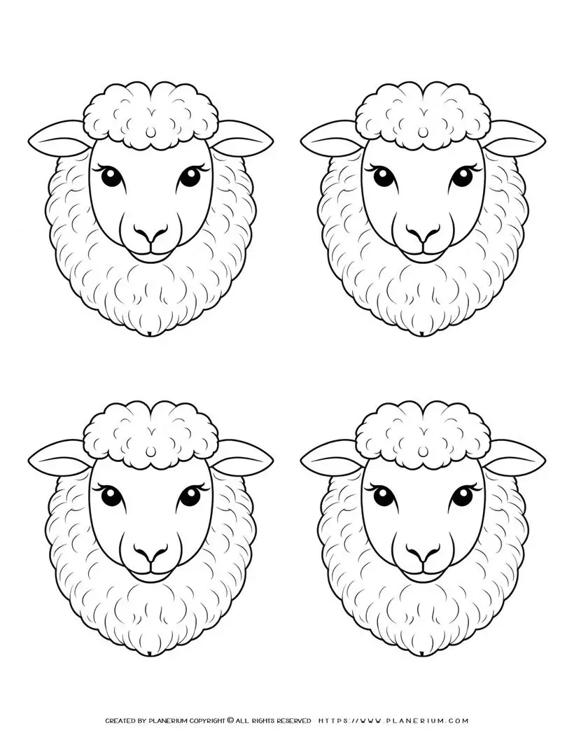 Four Sheep Face Outlines Coloring Page! 🐑🌈