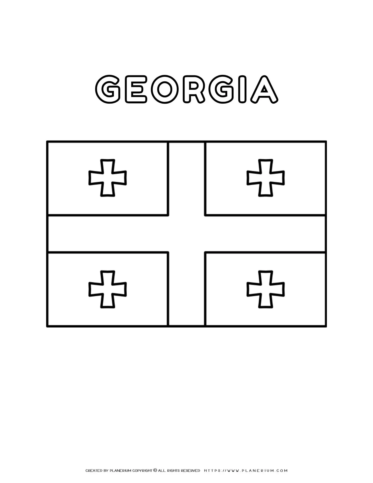 Explore the colorful world of Georgia with our engaging and educational Georgia flag coloring page. Nestled between Europe and Asia, Georgia is a country rich in culture, history, and tradition. The flag, known as the “Five Cross Flag,” features a central cross with four smaller crosses in each corner, reflecting significance in Georgian medieval heraldry and Christian symbolism. Learn more about Georgia on Wikipedia.