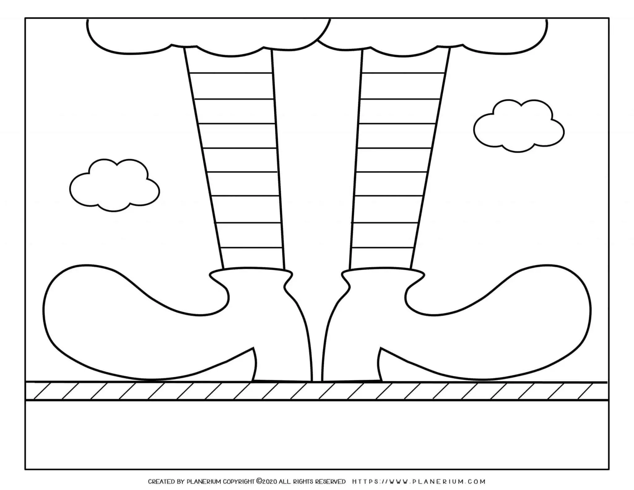 - Assign as an independent art center task where students color the giant clown balancing on a rope, emphasizing the striped costume and giant shoes to practice pattern and careful coloring.