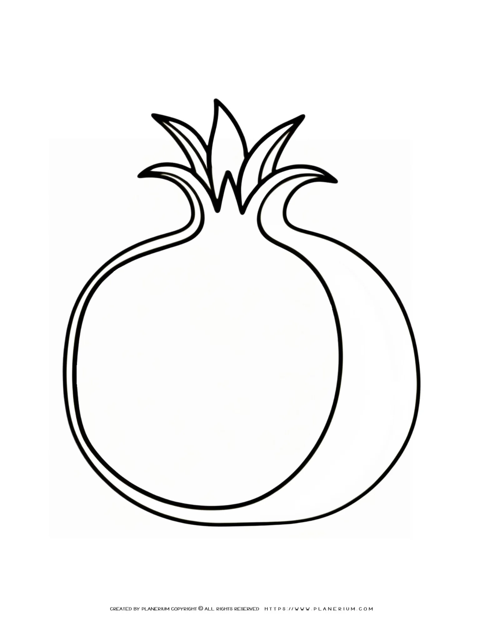A charming free printable coloring page featuring a Half Pomegranate Outline Face left – perfect for teachers, parents, and homeschoolers who want a playful, curriculum-friendly art activity. This simple outline shows clean half pomegranate with large area for painting, writing or any creative activity.