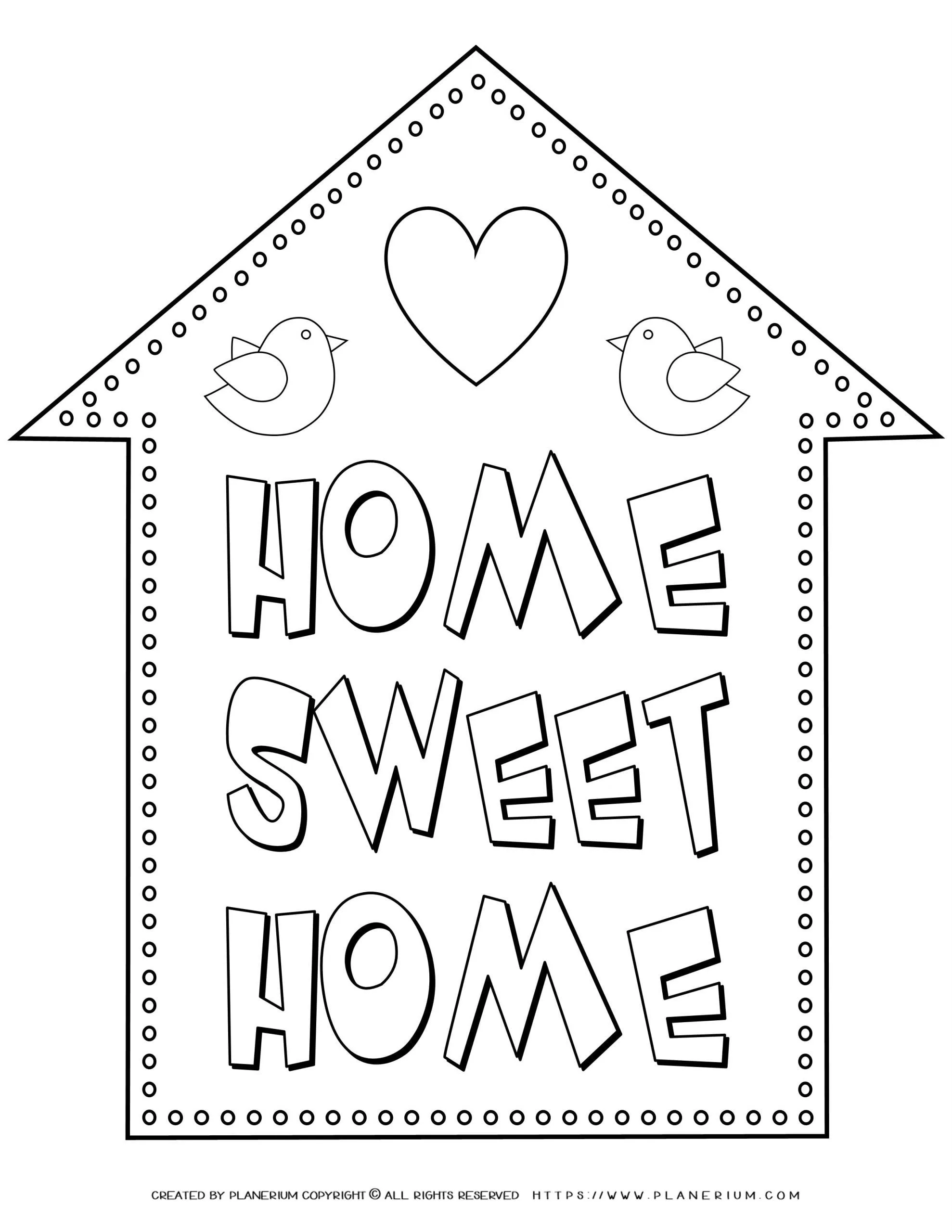Make your own unique “Home sweet home” poster by coloring this coloring page