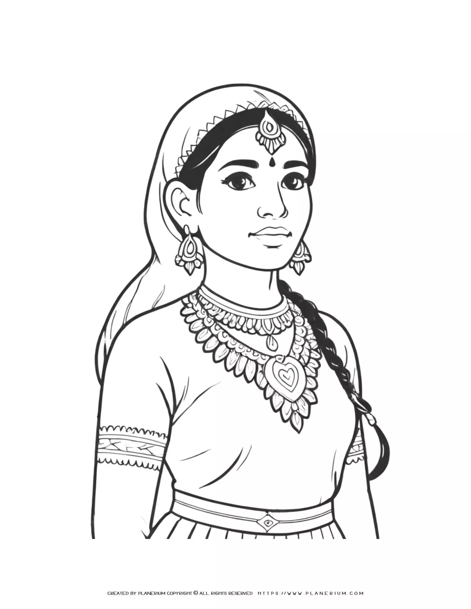 Indian-Woman-Portrait-With-Traditional-Clothes-Detailed-Coloring-Page! 🇮🇳👩🎨