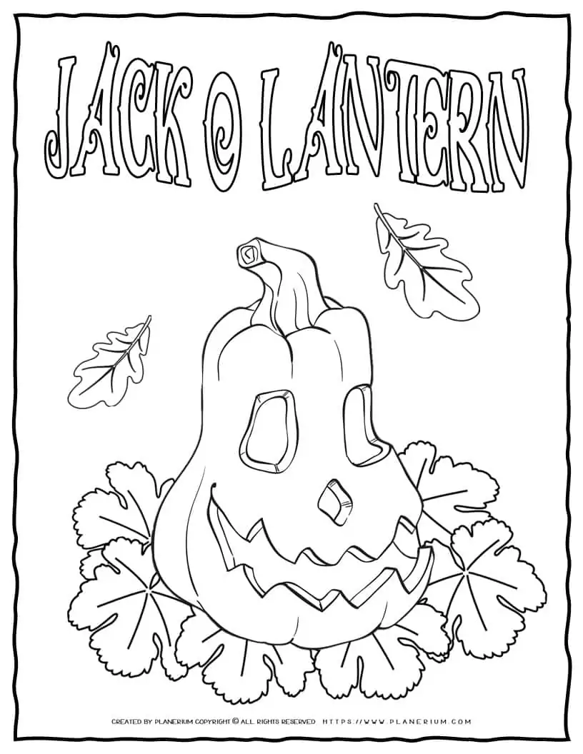 the title “Jack O Lantern,” Jack o lantern outline, and leaves.
