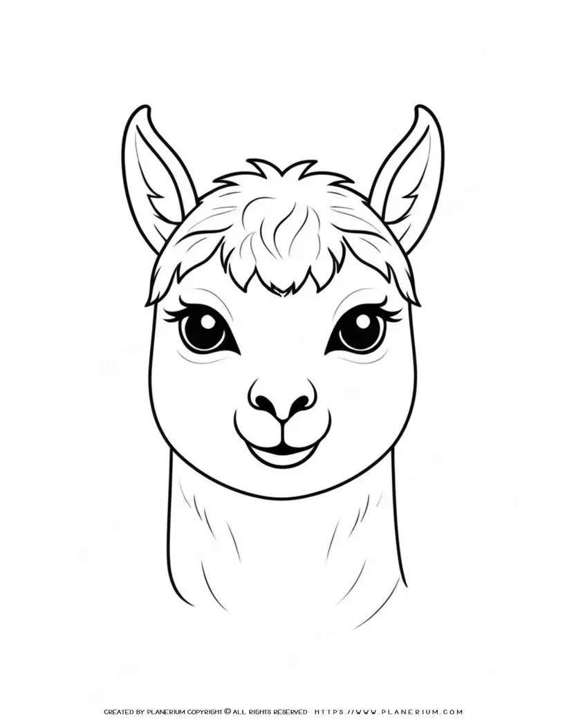Free Printable Llama Face Outline Front View, Animal Coloring Page! 🎨