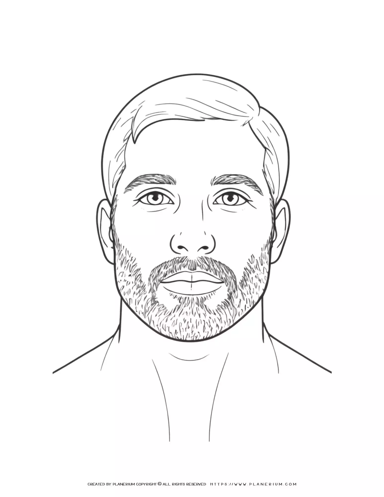 Introducing our “Male Portrait with Beard Front View Coloring Page” – an engaging and educational printable designed to enhance creativity and provide a relaxing activity for both children and adults. This beautifully detailed coloring page showcases a front-view portrait of a distinguished bearded man, perfect for art lessons, relaxation, or recreational coloring sessions.