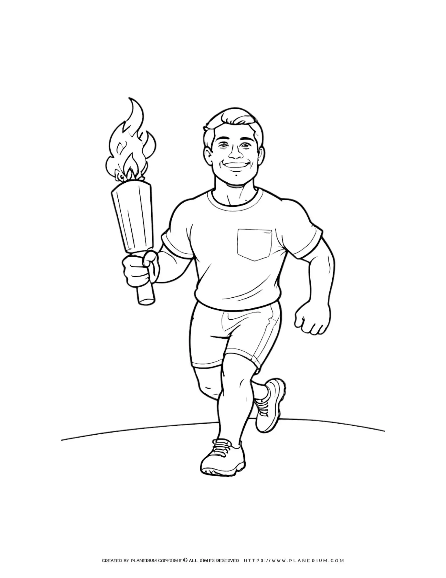 Man Running with Olympic Torch Coloring Page for Kids and Adults