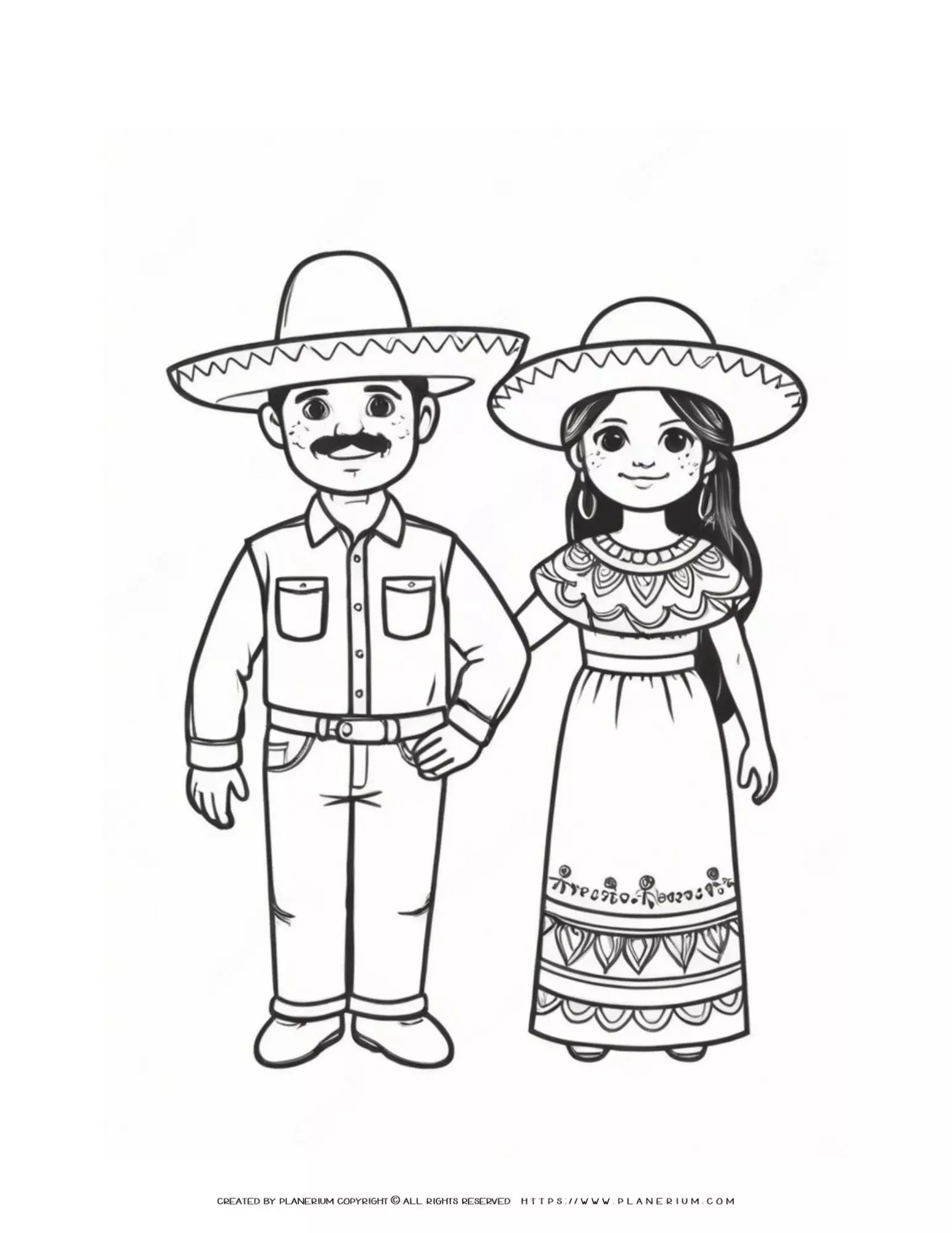Mexican Couple Traditional Outfits Coloring Page for Kids – Cultural Heritage Activity