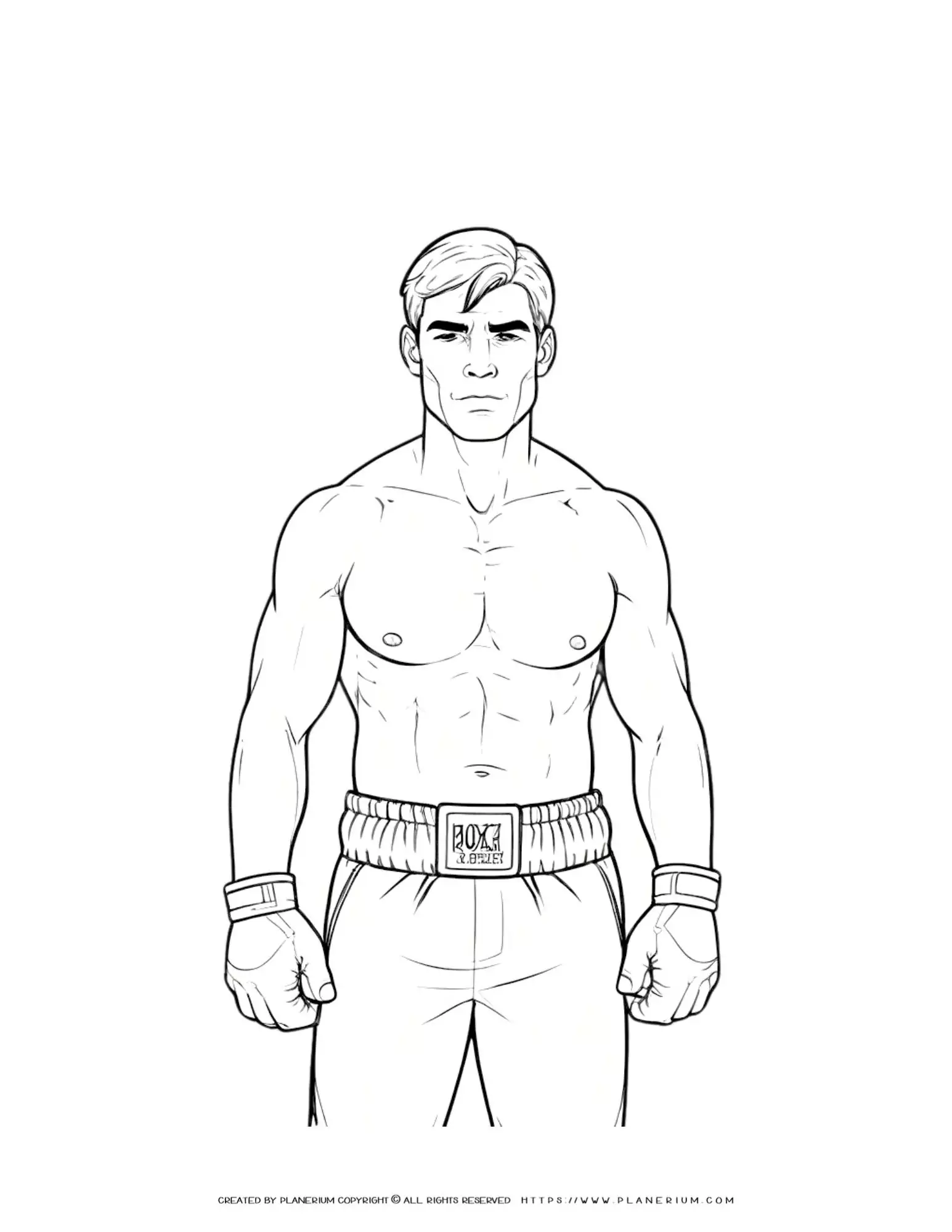 Muscular Male Boxer Front View Standing Pose Coloring Page