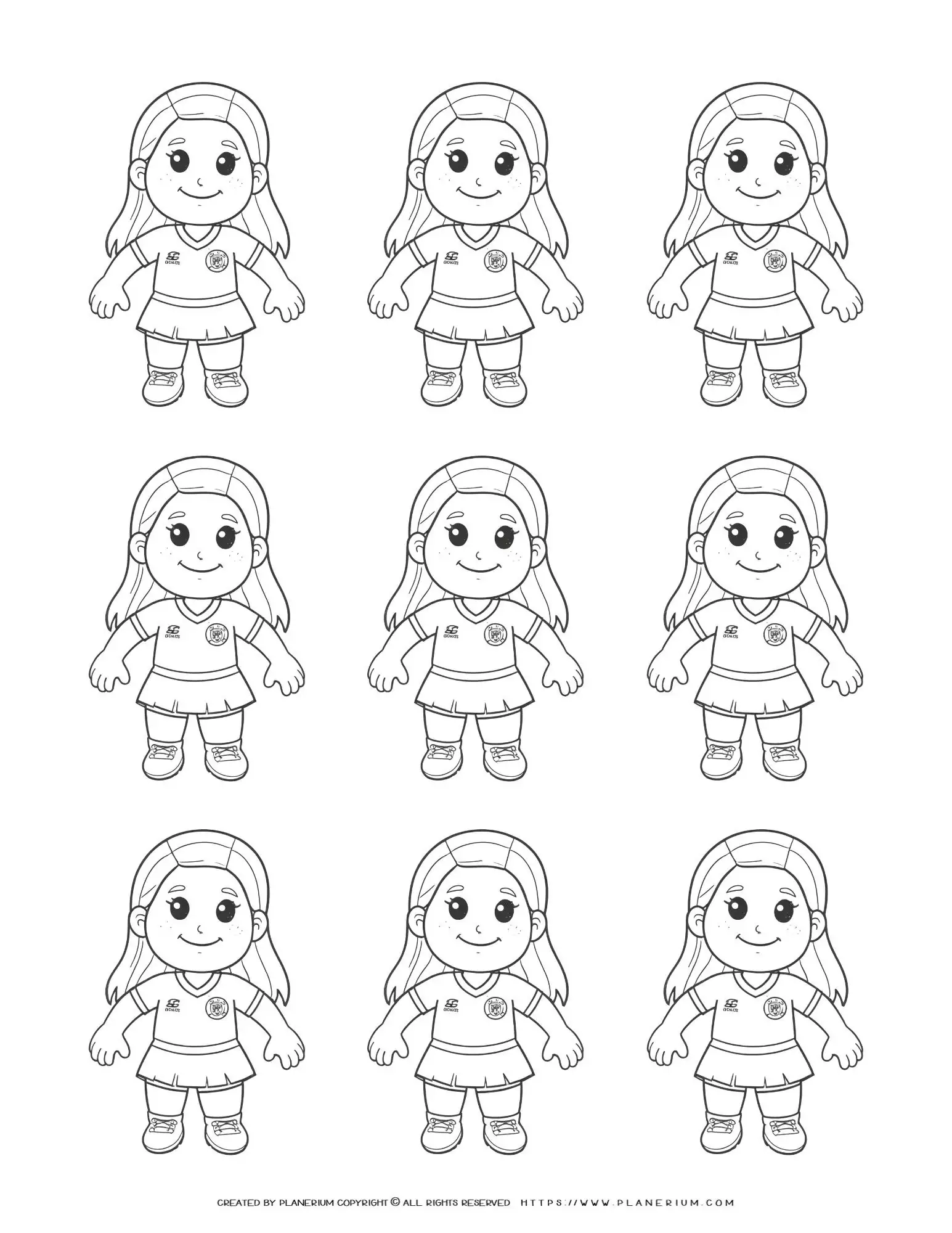 Unlock a new level of engagement and educational value with our “Nine Identical Comic Soccer Girls Players Standing Outlines” printable. Dive into the fun and transform learning into an exciting adventure today! 🌟