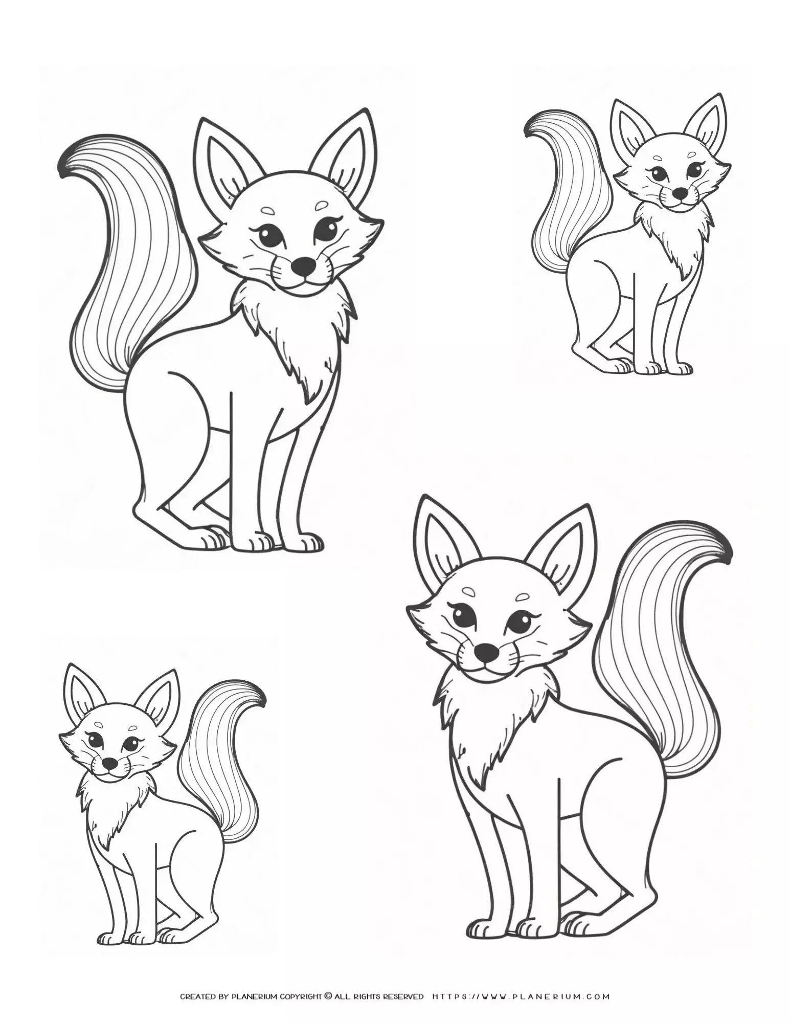 Invite your students or children to embark on this artistic journey with our “Four-Fox-Outlines-Different-Sizes-Coloring-Page” and watch their creativity, along with their understanding of the natural world, flourish. 🌿