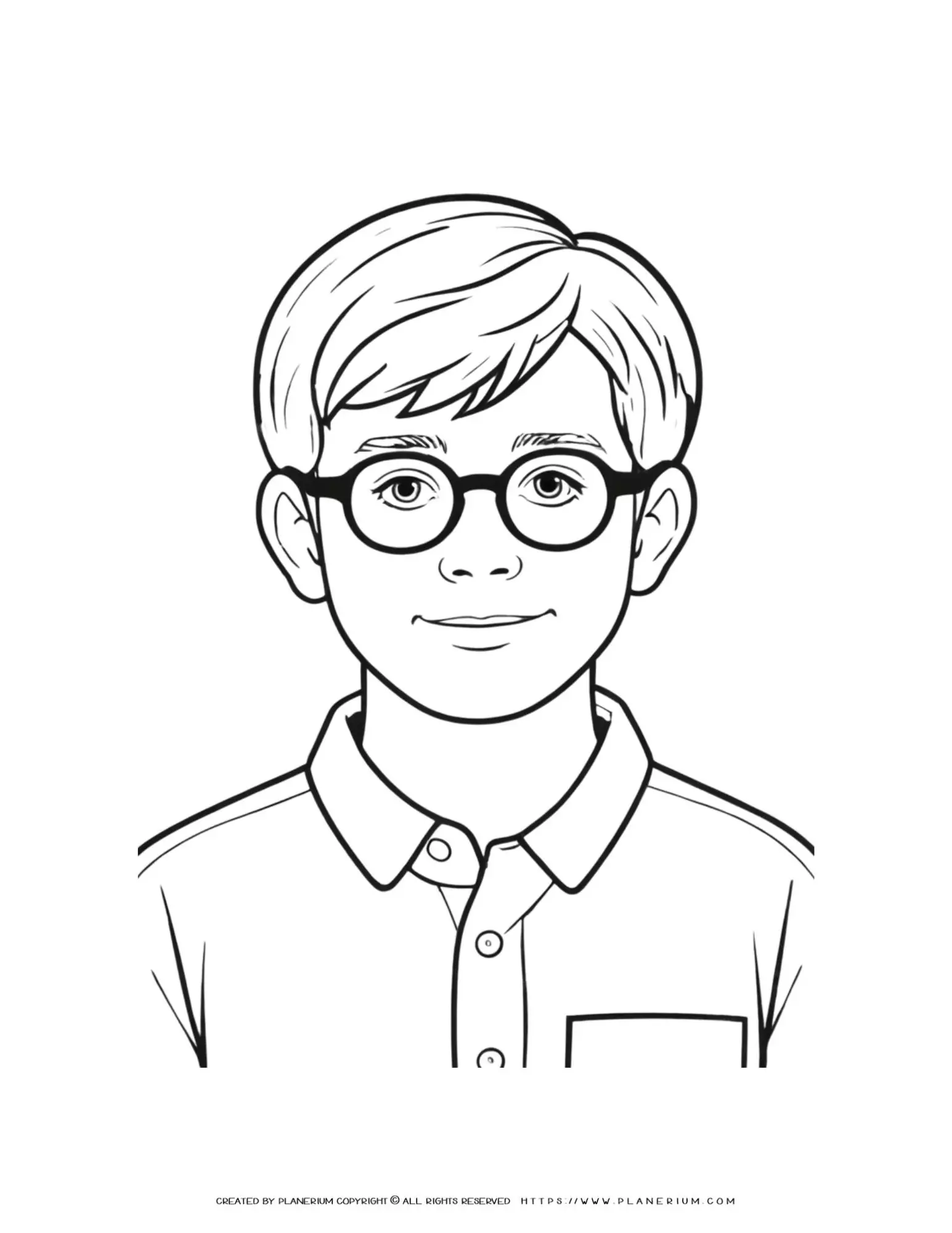 🚀 School Boy Portrait with Glasses Coloring Page: A Fun Educational Tool