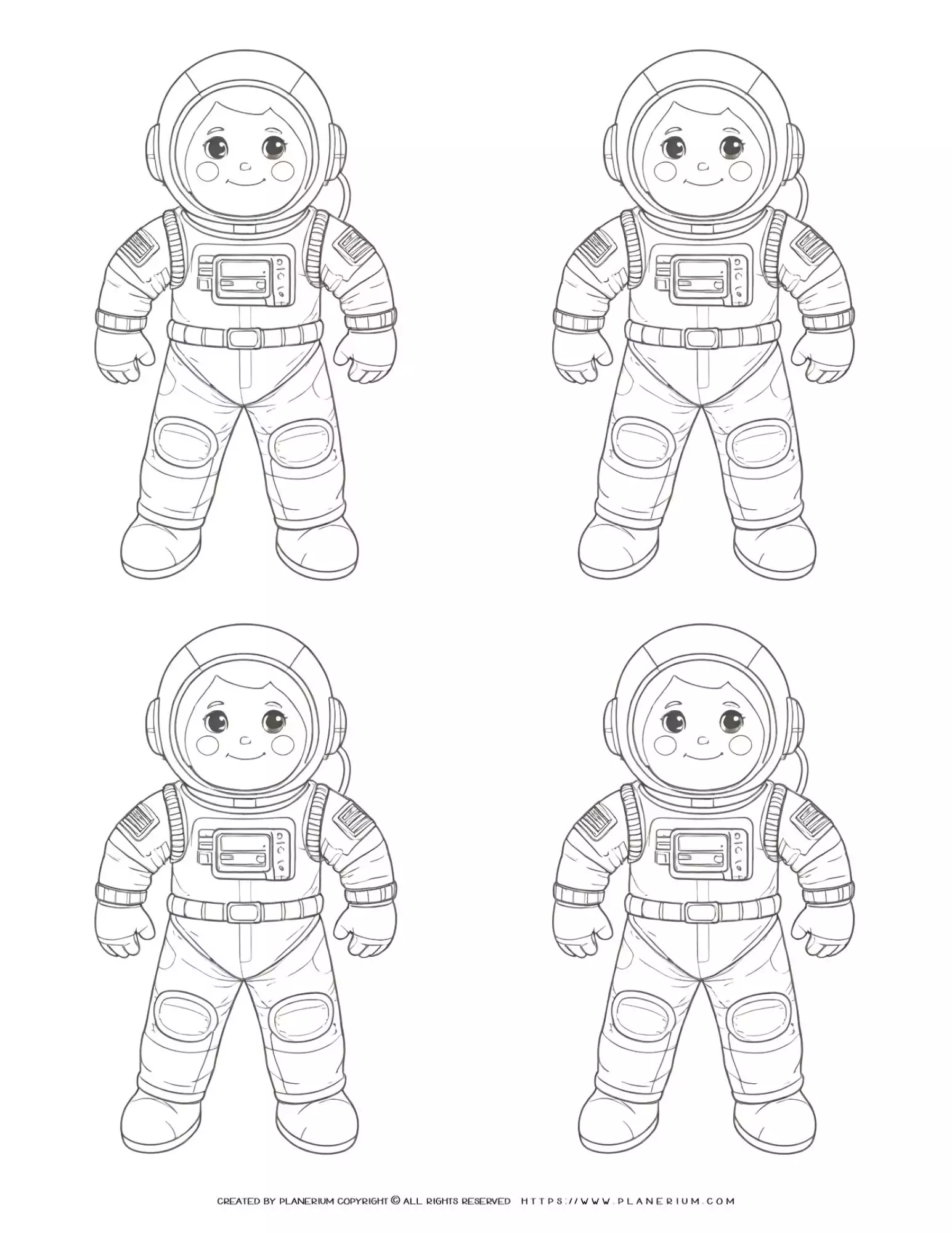 Set of 4 Kid Astronaut Outlines for Coloring and Activities