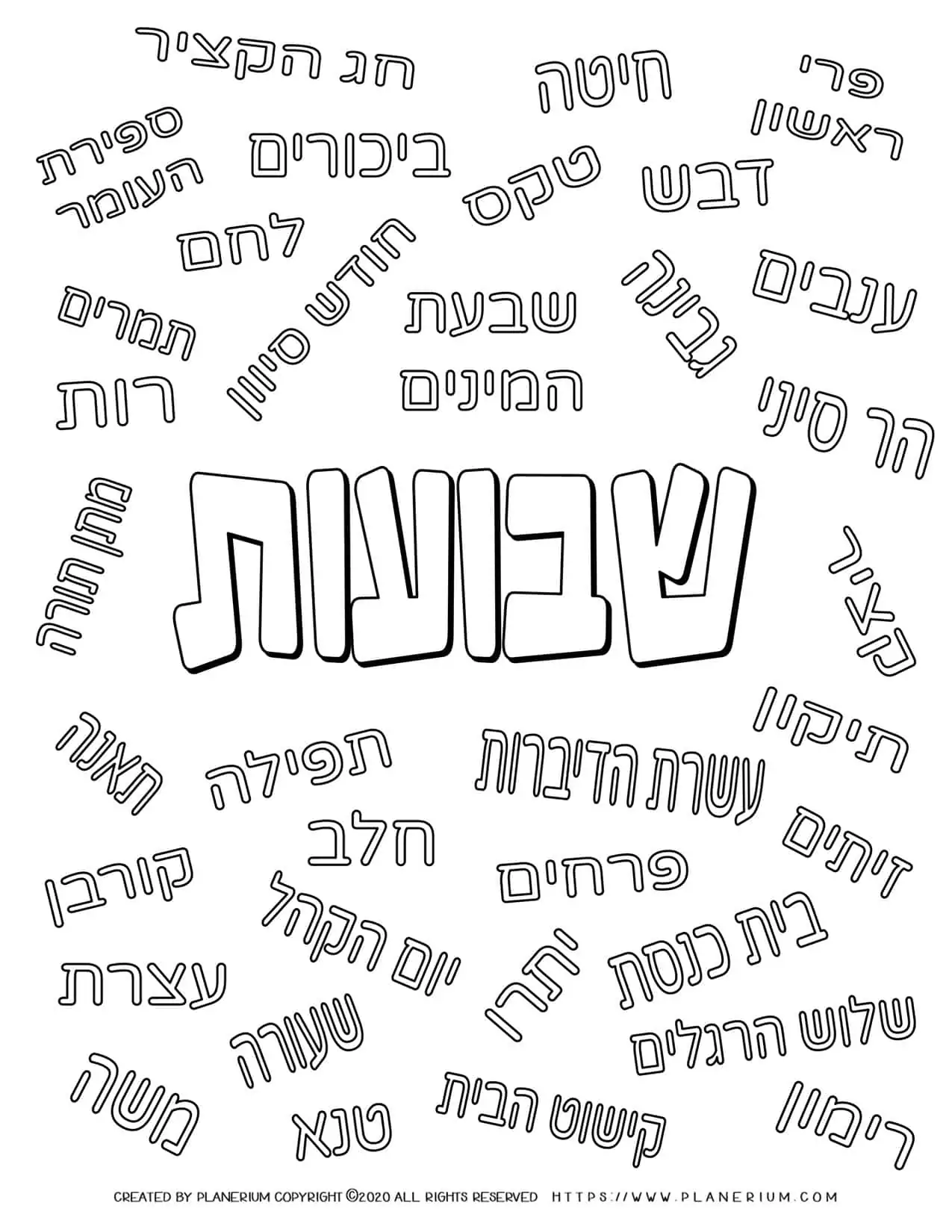 Free Coloring Page – Shavuot Related Words