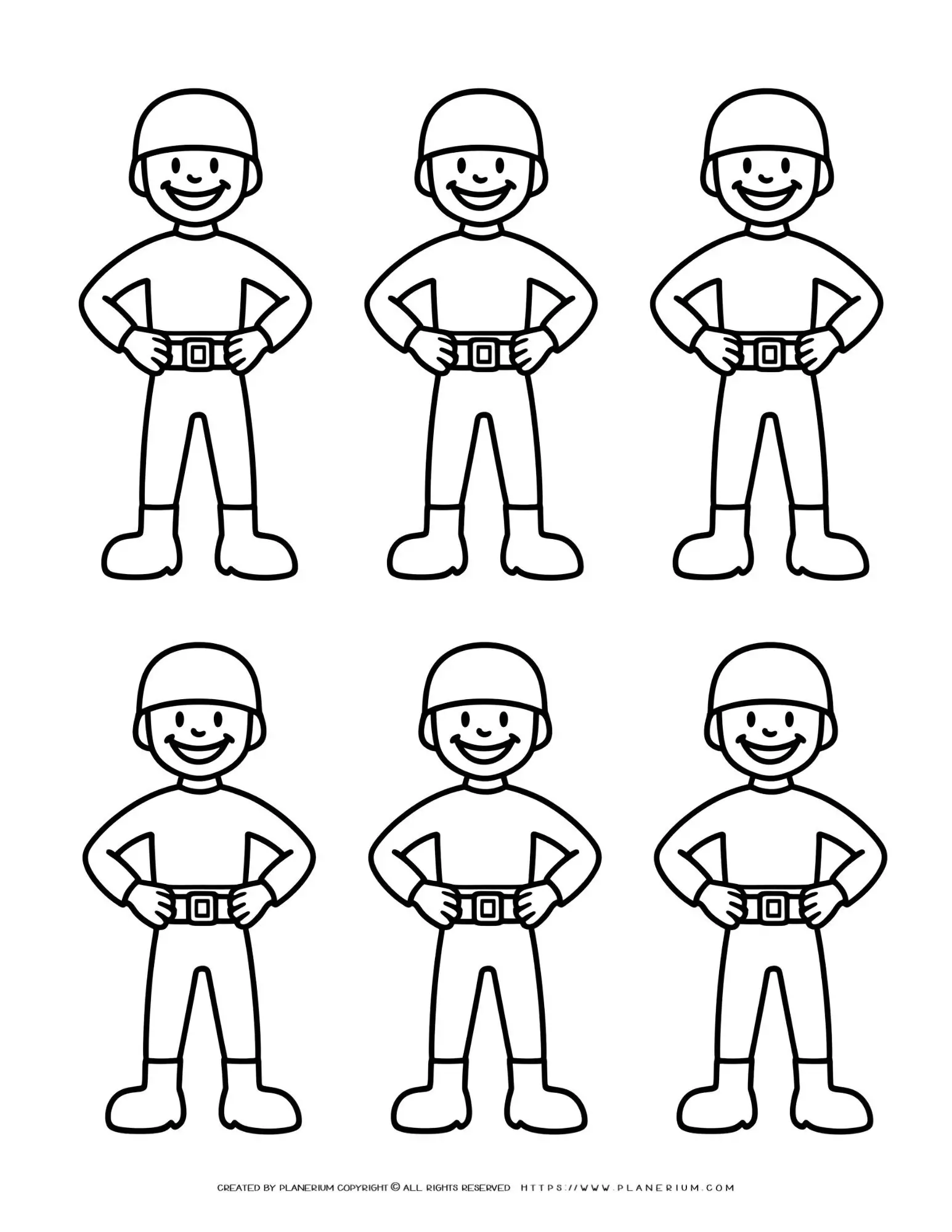 🎨 Dive into the engaging world of these “Six Identical Happy Soldiers with Helmets Standing Outlines” educational printables, designed for teachers, parents, homeschoolers, and adult learners! This versatile resource appeals to a wide audience, bringing creativity and structured learning into various settings.
