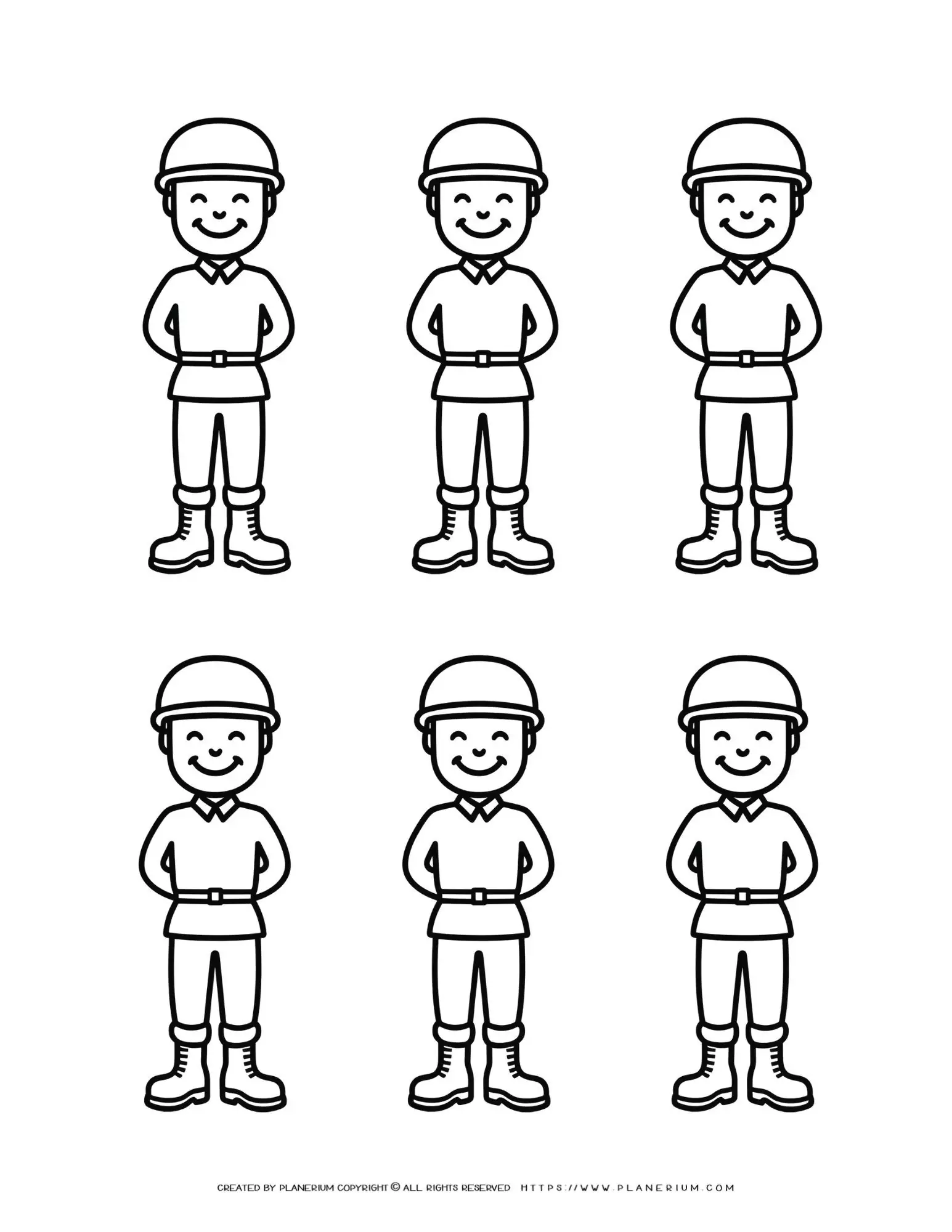 Incorporate the “Six Identical Soldiers with Helmet Outlines” printable into your learning toolkit and discover the educational and creative benefits it brings to all ages.✨
