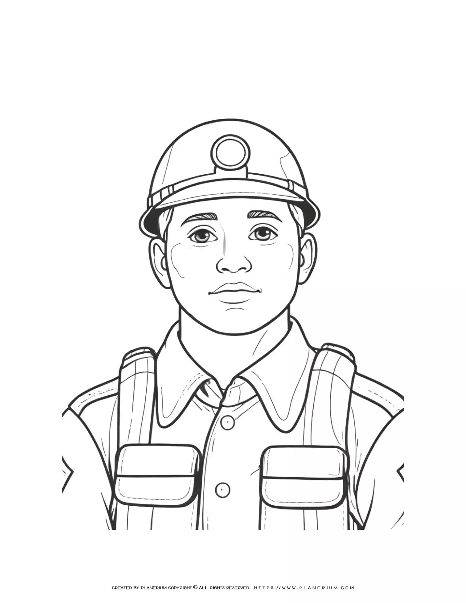 Soldier Male Portrait with Helmet Coloring Page
