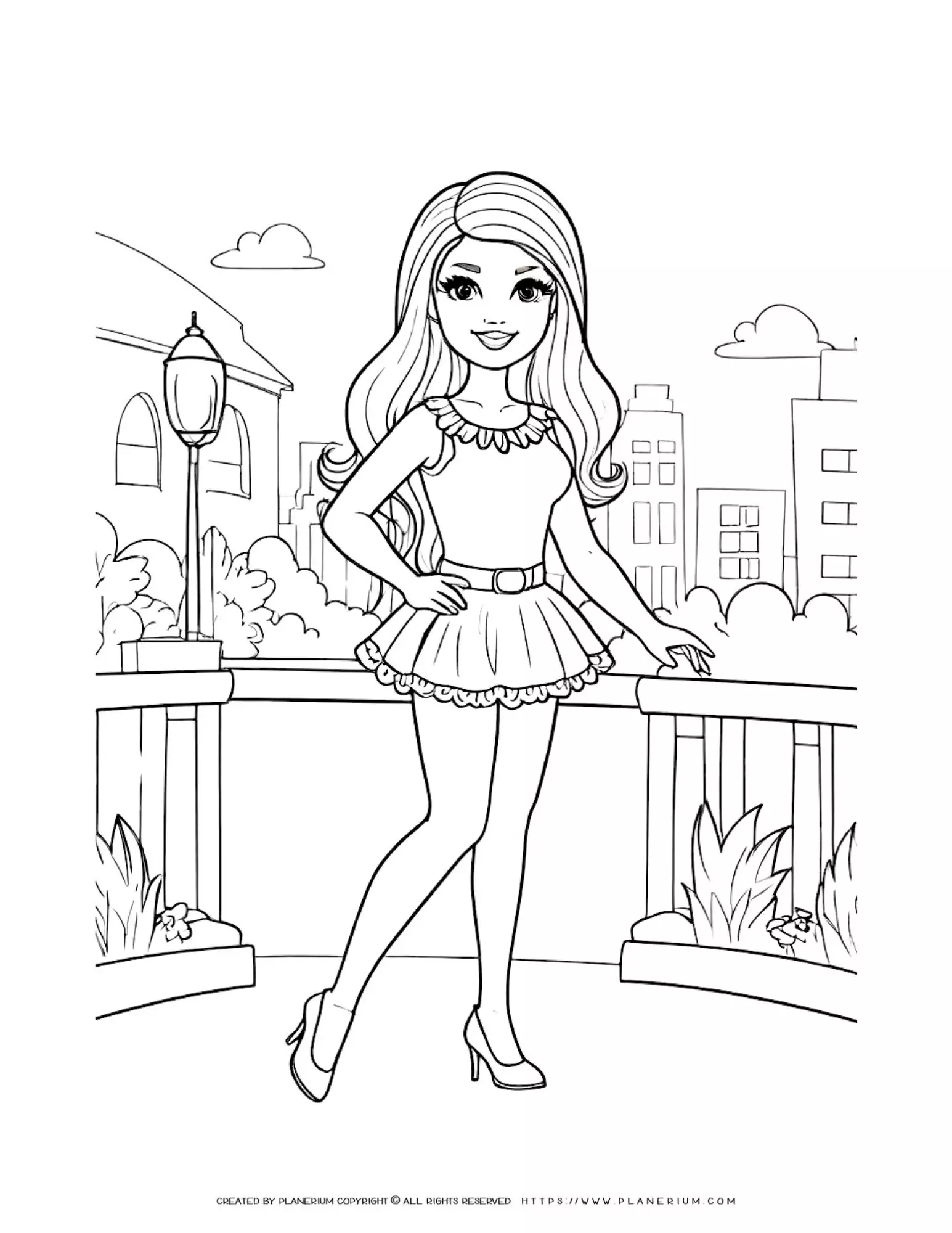 Vibrant Outdoor Barbie Full-Body Illustration Coloring Page – Perfect for Creative Fun!