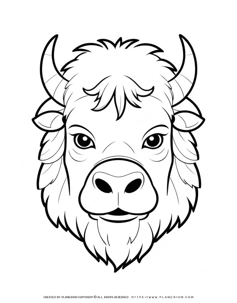 🦙Yak Head Front View Animal Coloring Page for Kids 🦙