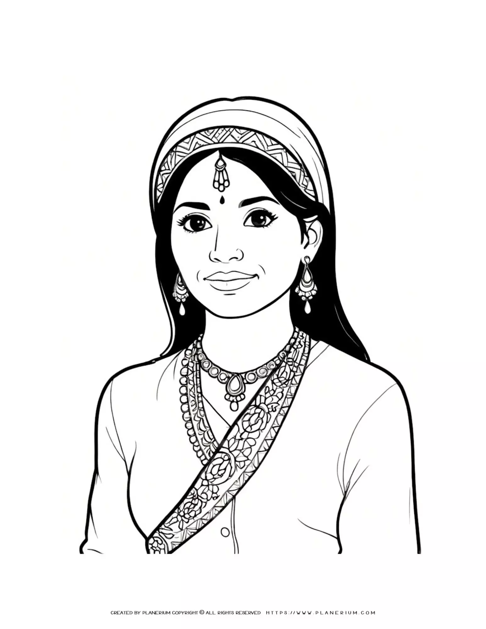 Young Indian Woman Torso Illustration with Traditional Clothes Coloring Page
