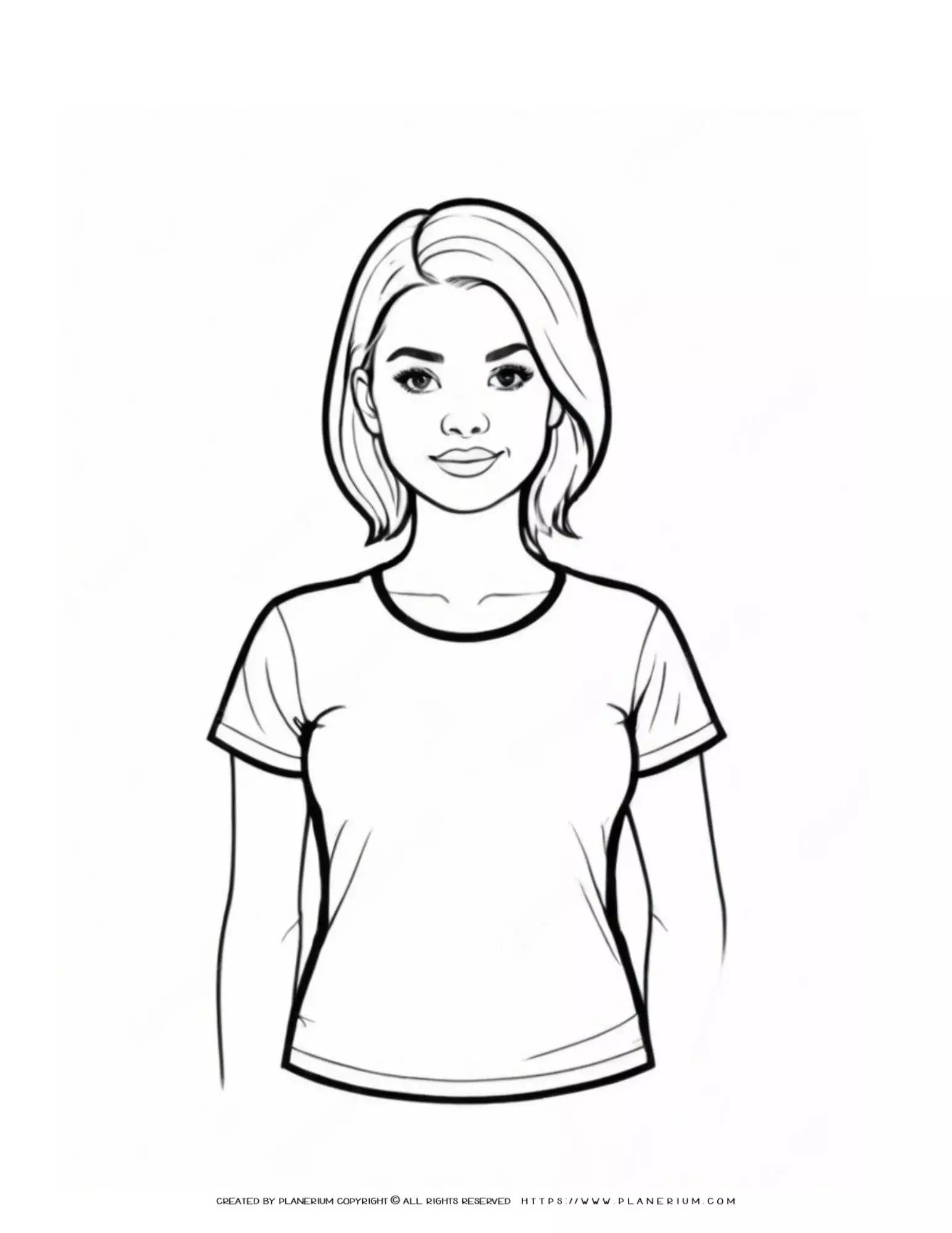 Young Woman in T-Shirt Torso Outline Illustration
