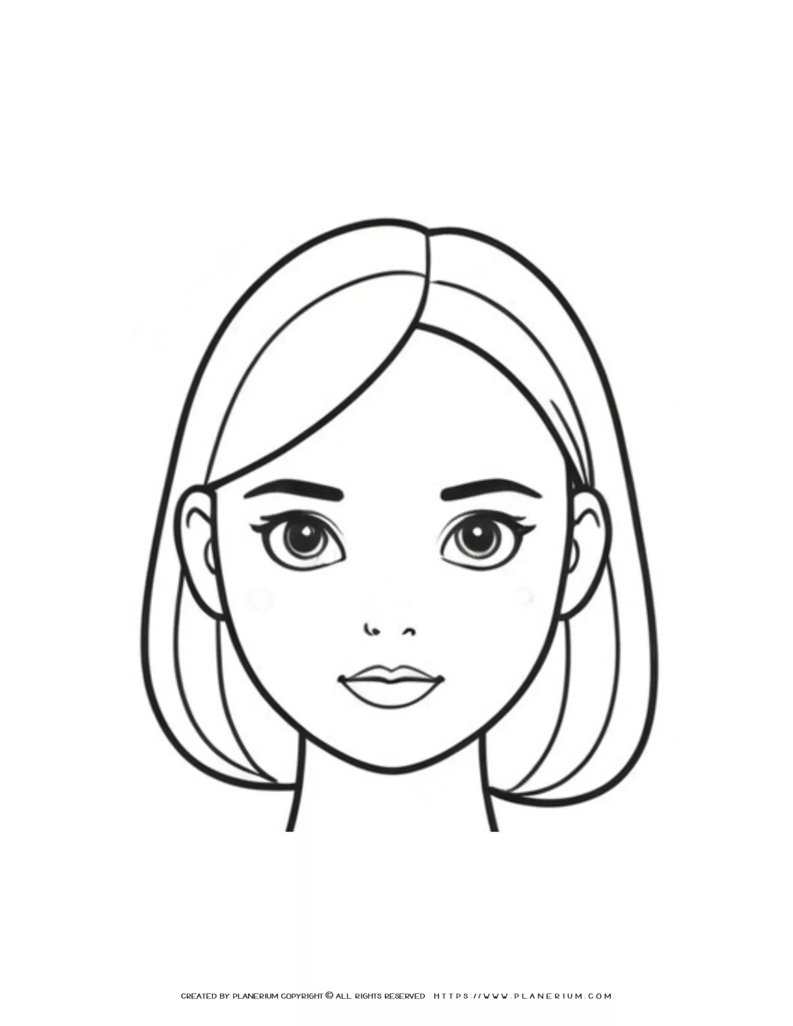 Introducing our Outline Coloring Page featuring a Young Womanʼs Face from Front View – an artistic black and white illustration that’s both captivating and educational. Perfectly designed for a wide array of audiences including teachers, parents, homeschoolers, special educators, and adult learners, this printable offers endless possibilities for creative exploration.