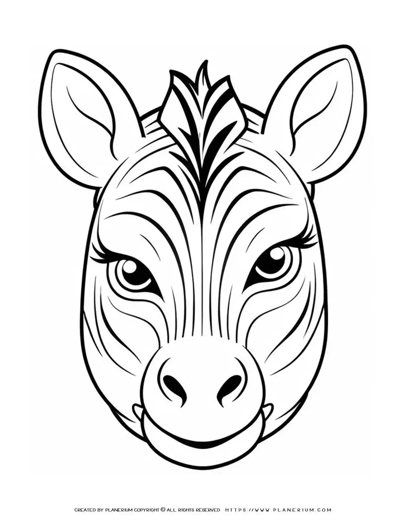 🦓 Zebra-Head Outline Front View Coloring Page for Kids