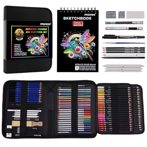 FPGFIIVO 101-Piece Premium Drawing & Sketching Set with 3-Color Sketchbook for Educators!