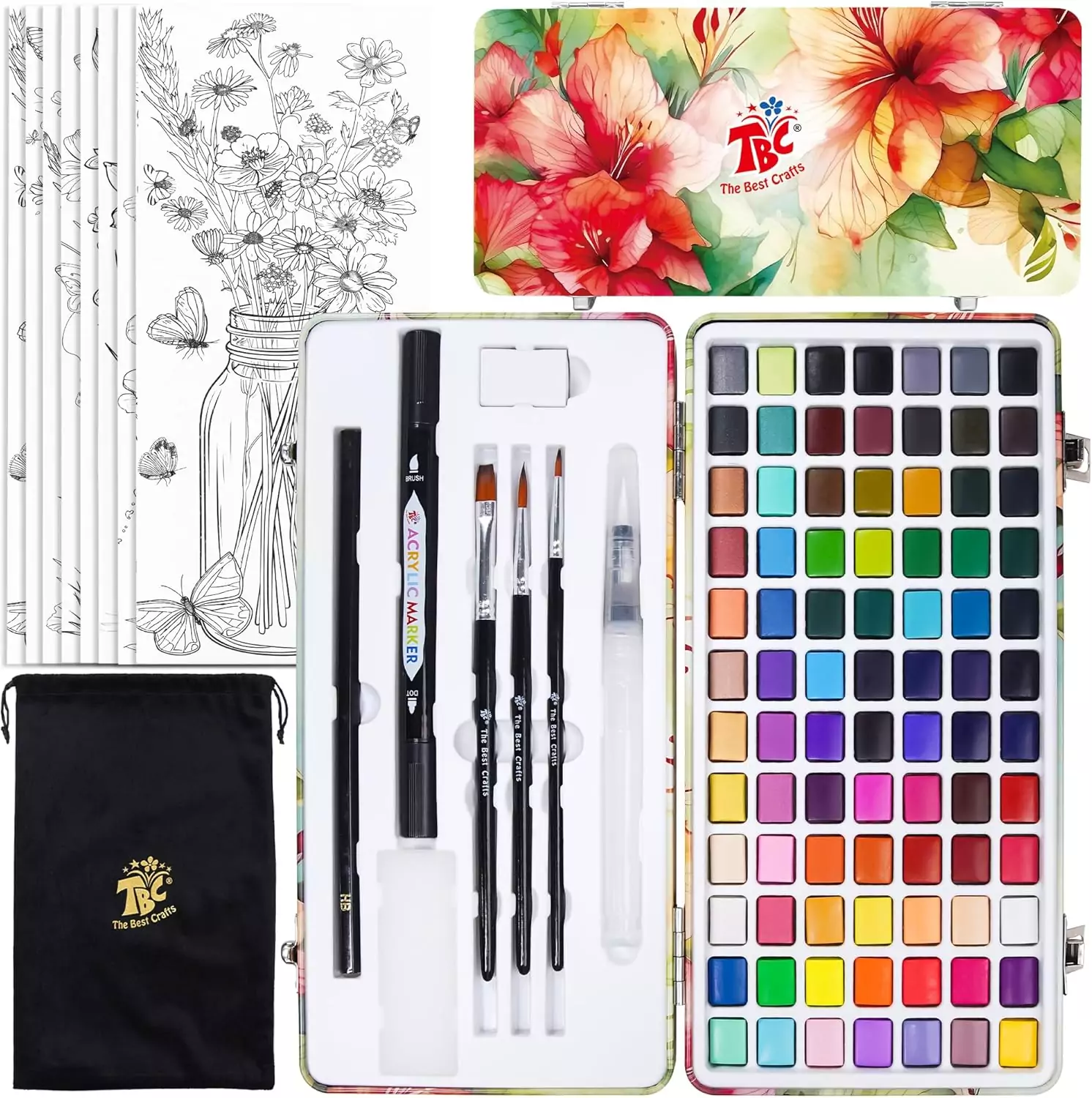 TBC Best Crafts 84-Color Watercolor Set for Kids: 50 Regular & 20 Pearlescent Metallic Paints!