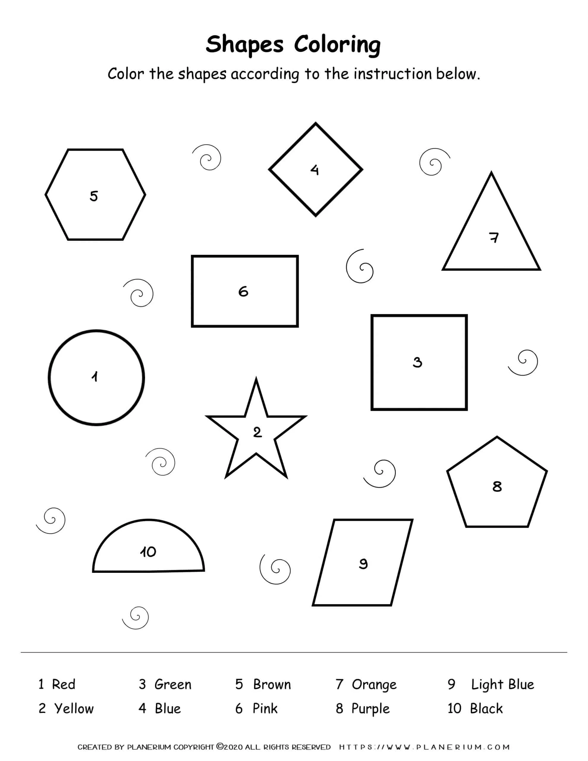 Objective: Color the shapes following the numbered colors written below the worksheet.