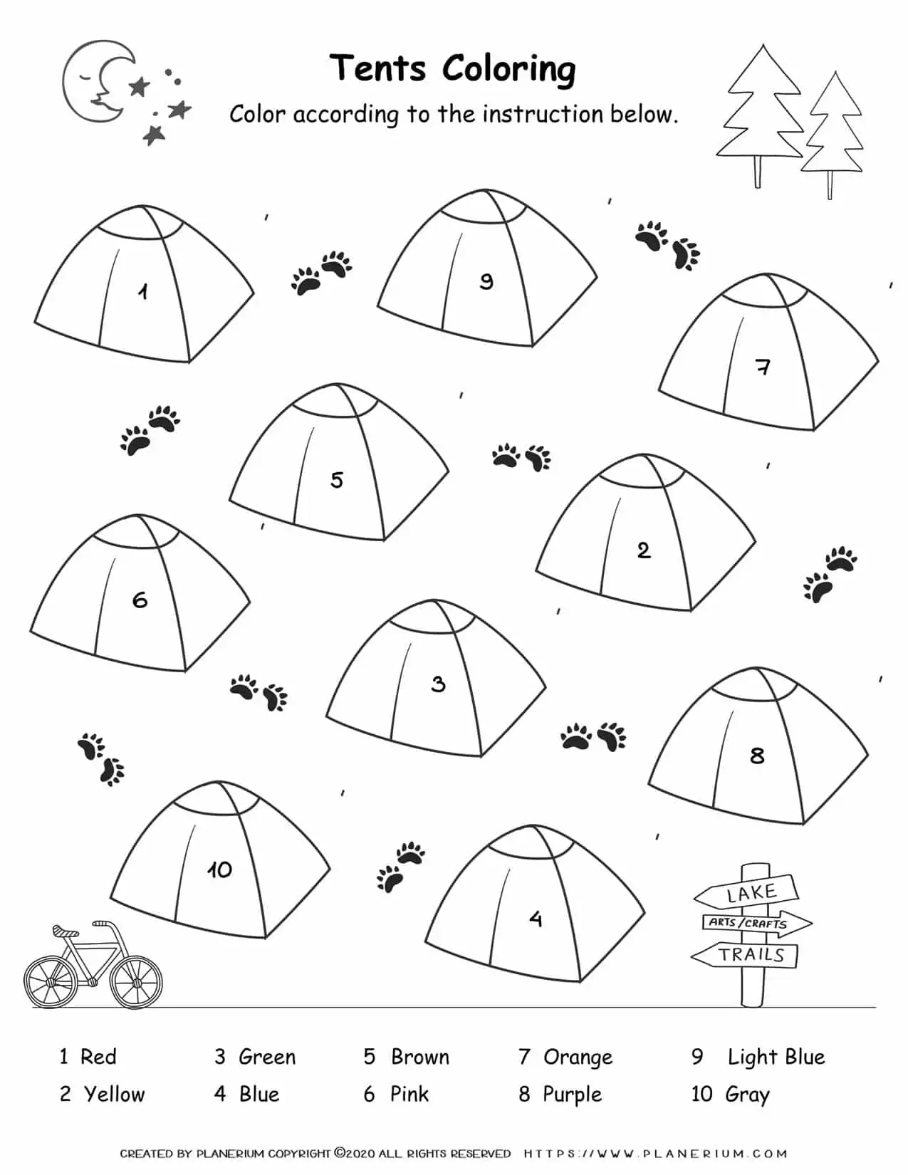 Free Color by Number Activity – Tents