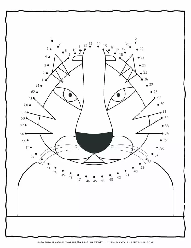 Tiger Face dot to dot free printable for kindergarten and grade 1.