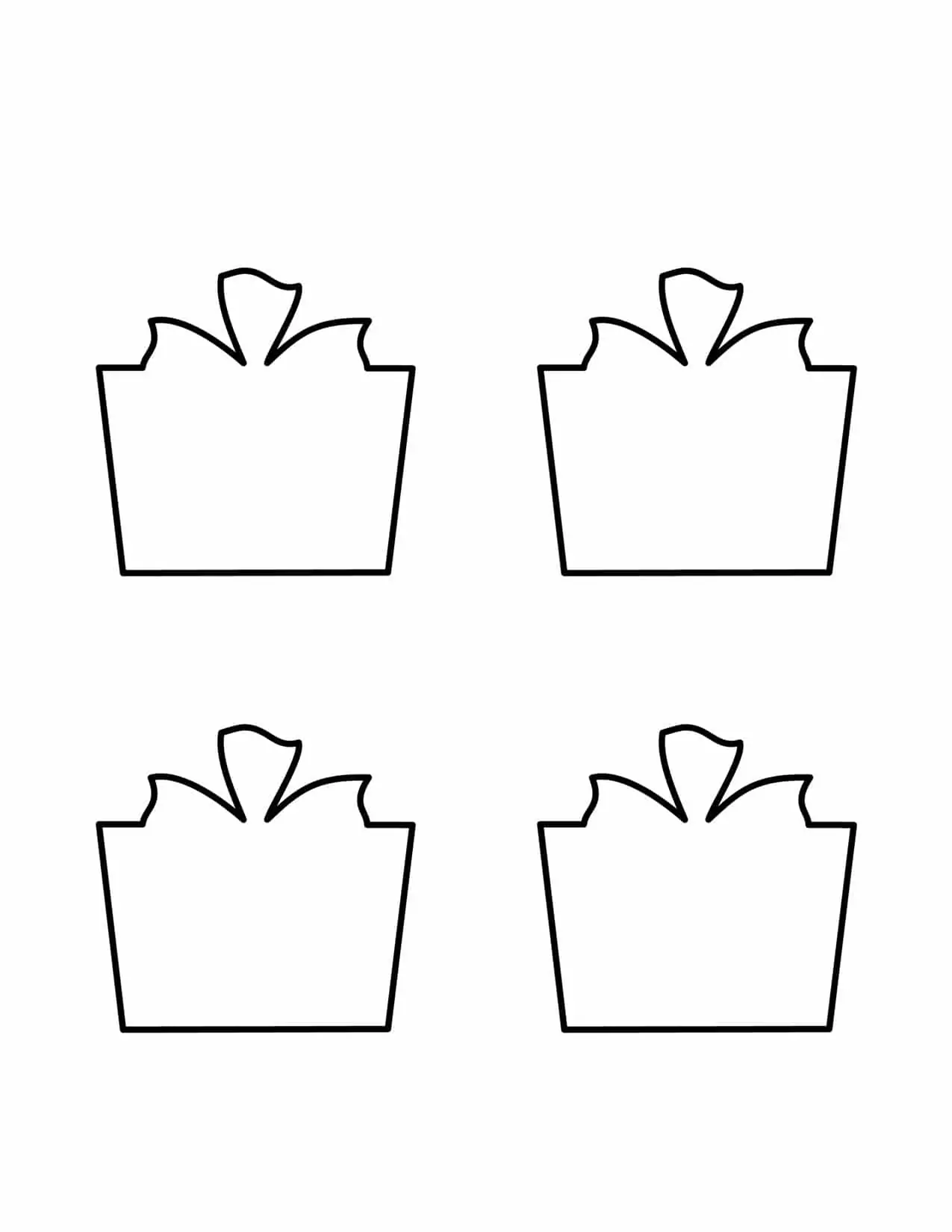 Four Presents outline template to print and use for making worksheets, coloring,